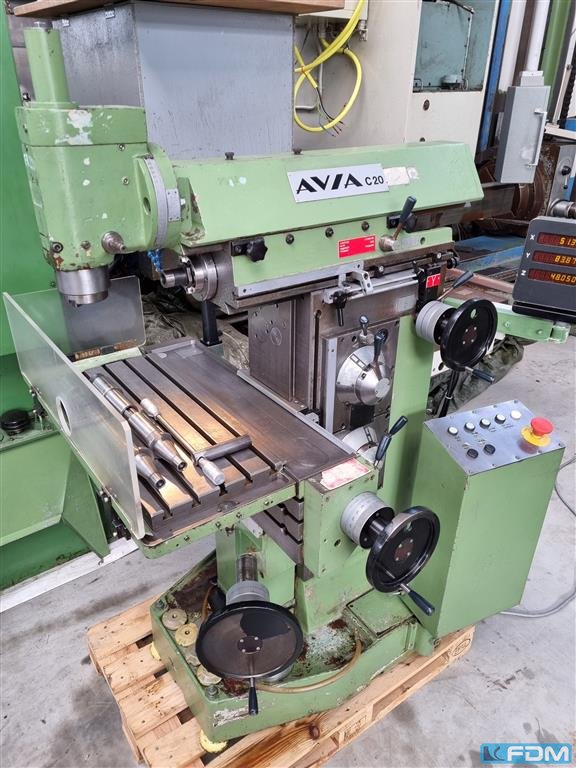Fresadora - Universal Hacer: AVIA Tipo: FND 25 Año de construcción: 1984 Tipo de control: convencional País de origen: Polonia Plazo de entrega: Ahora mismo Técnicas Vía: 400 milímetros Y-Way: 360 milímetros Z-Way: 400 milímetros Mesa de montaje: 800x400 milímetros Portaherramientas: SK40 Eje de la pluma: 100 milímetros Velocidad: 40...2000 rpm Requisito de potencia total: 4,5 kW Peso de la máquina aprox.: aprox. 2,4 t Requisitos de espacio aprox.: L: 1.6xW: 1.3xH: 2.0 m
