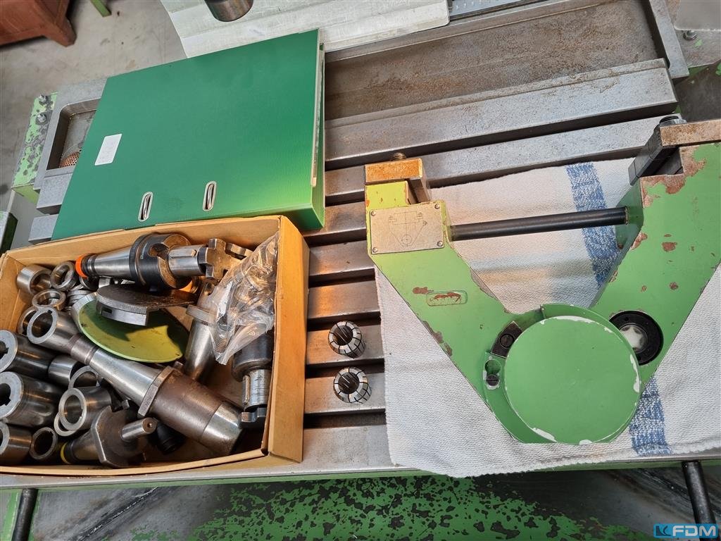 total power requirement:2,4 kW weight of the machine ca.:1150 kg dimensions of the machine ca.:1550 x 1615 x 1630 mm table clamping surface LxW:315 x 710 mm max. tool weight:200 kg T - slots distance:63 mm T - slots - width:12 mm taper bore:Spindel SK 40 spindle turning speed range:56 - 1800 U/min feed speeds:11,2 -355 mm/min Documents:vorhanden