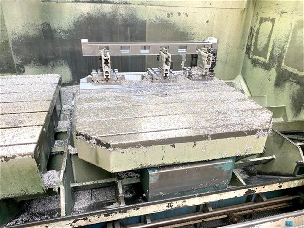 x-travel:2300 mm y-travel:1200 mm z-travel:600 mm turning speeds:30-10.000 1/min max. torque on the spindle:254 / 159 Nm control:HEIDENHAIN TNC 430 tool taper:SK 40 tool change unit:60 Pos. spindle:40 / 25 kW fixed working table:surface area:1.100 x 1.100 mm rotary table:1.100 x 1.100 mm rapid traverse:30 m/min total power requirement:69 kVA weight of the machine ca.:20 t universal machining center with indexing head (2,5°), NC-rotary table, max. table load 1.500kg, internal coolant supply 30 bar, paper filter, el. handwheel, chipconveyor, automatic doors, flush gun, no touch probe available, approx. 81.400 h main swich on approx. 72.200 h control on approx. 26.700 h program running on machine under power , for functional testing