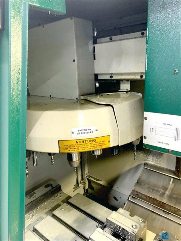 x-travel: 600 mm y-travel: 410 mm z-travel: 520 mm control: Siemens type: 840 D Tool changer: 30 Pos. spindle taper: ISO: 40 spindle turning speed range: 40-6000 U/min table surface area: 840x420 mm Table load: 500 kg spindle power: 8,5 kW total power requirement: 15 KVA weight of the machine ca.: 2,7 t dimensions of the machine ca.: m Machine has 4 axes The tech. Data are manufacturer or operator information and therefore non- binding. We reserve the right to prior sale, Our terms and conditions of sale apply exclusively. About us More than 400 of our own machines in stock Over 15,000 m² of storage space, 70 t crane capacity More than 10,000 items and accessories for your workshop If you are interested in selling machines, production lines, or your business, please contact us. You can find further offers on our website. Tours are possible by appointment. We look forward to your visit ...