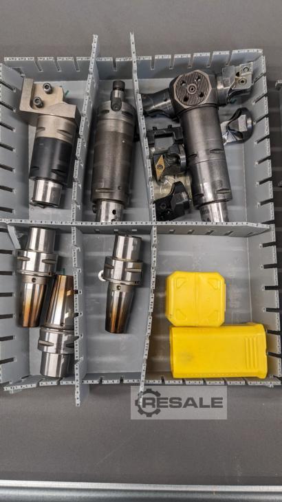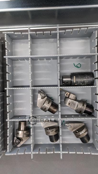 tool taper: VDI shaft cross cut: 40 tool taper: Okuma ratio: ? turning speeds: ? U/min: ? coolant: ? Set of tool holders VDI 40 with drive ( 8 pieces )suitable e.g. for OKUMAbox dimensions approx. 500 x 300 x 200 mmweight approx. 50 kg3 x EPPINGER 4.200.231 drilling and milling head3 x EPPINGER 4.200.289 drilling/milling head1 x Drill- Milling head WTO 4 1 06 1 6006 - 401 x COROMANT 410 1200 72 - 40 drilling and milling head1 x 2-jaw chuck KH 1-40The data for this ad was created with ModulMWS - the software solution of LogoTech oHG.