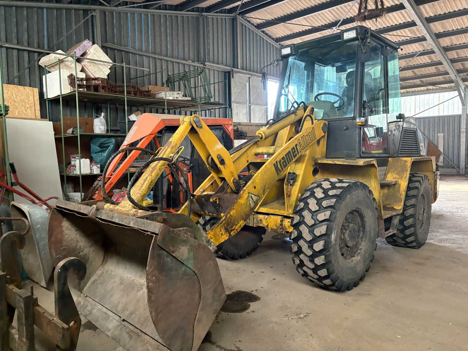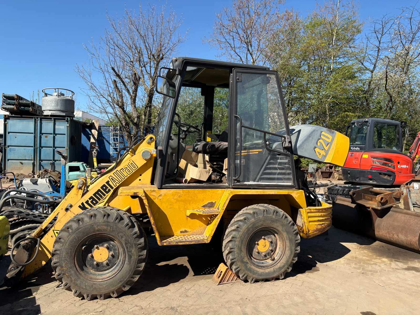 Kramer Allrad 420 con motor diésel Deutz (BF4L1011FT, 42 kW). Máquina compacta y robusta con cabina y tracción total. El motor funciona y arranca. Sin embargo, la máquina no está lista para su uso porque la bomba hidráulica (bomba de aceite) es una pérdida total y ya ha sido desmontada o desmontada. Actualmente no es posible operar la máquina. Auction-ID: 04J-7EK-1