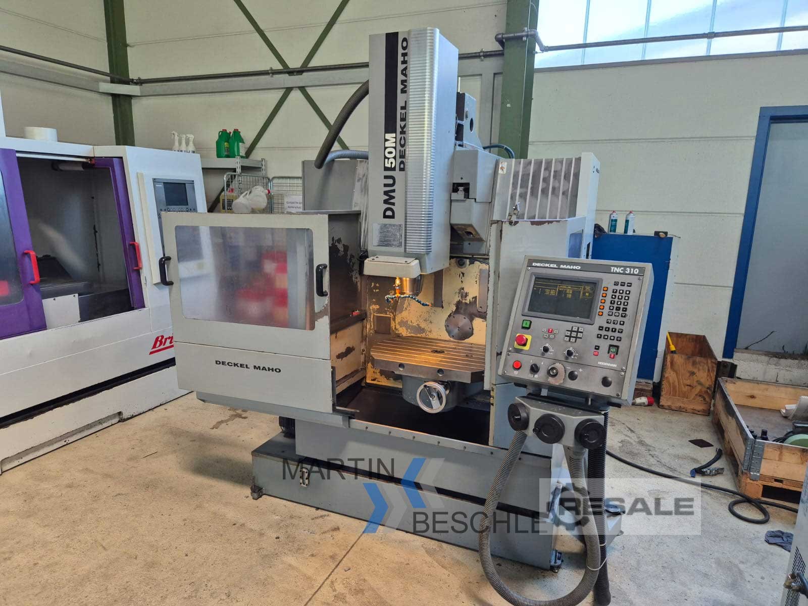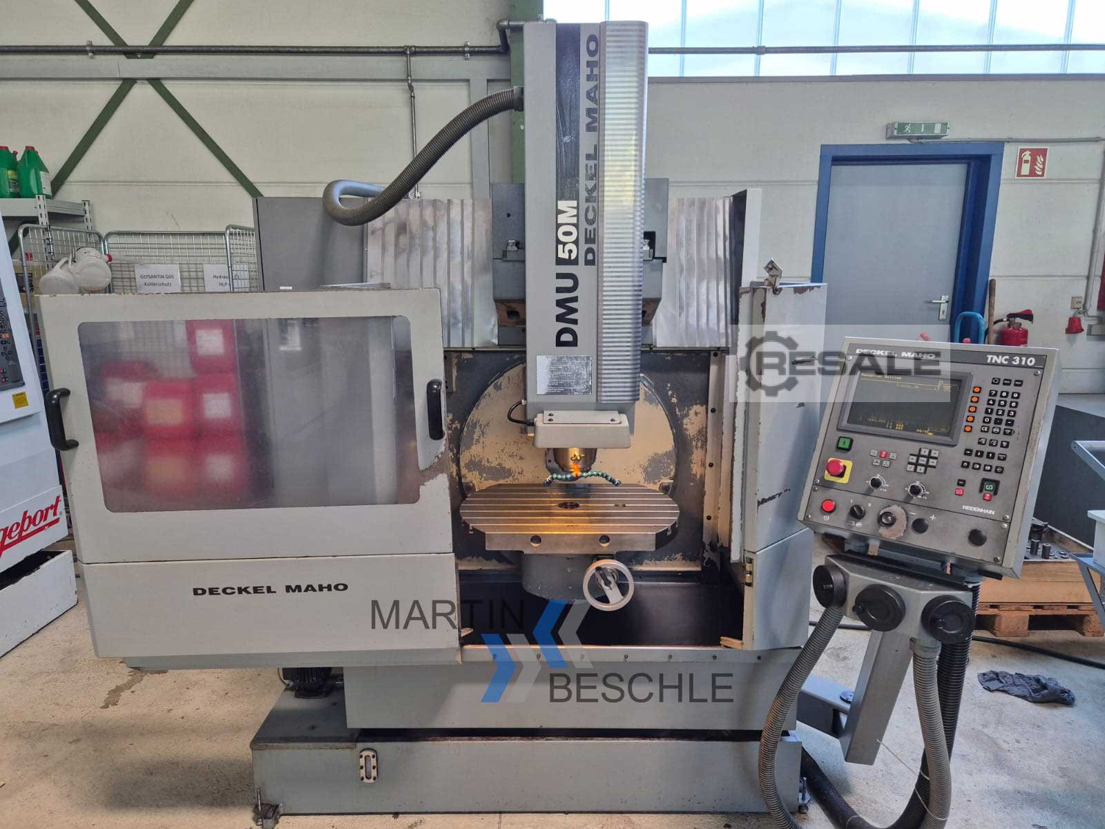 Máquina universal de fresado y perforación DECKEL MAHO DMU 50 M Con control Heidenhain TNC 310 Año de fabricación: 2001 Viaje: X 500 Y 400 Z 400 Rango de velocidad: 20 – 4.500 rpm variable infinitamente Con los siguientes accesorios: Giratoria manual – mesa giratoria con pantalla digital para los ejes C + B Superficie de sujeción de 700 mm x 500 mm Volante electrónico para los ejes X, Y y Z Cabina de protección de salpicaduras Luz de máquina 4 zapatillas de máquina ajustables en altura Configuración del refrigerante Instrucciones de funcionamiento