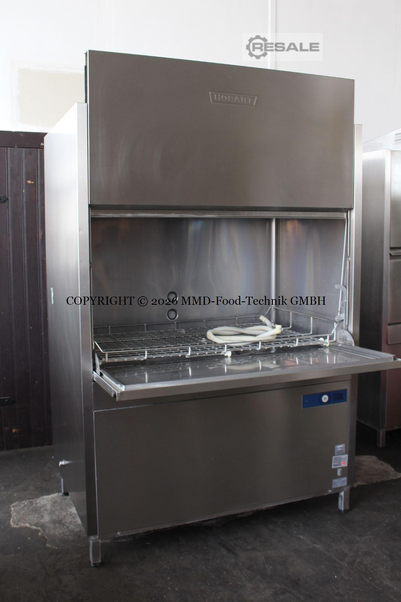 Lavavajillas comercial HOBART Modelo nº: UXT-10A Datos técnicos: Dimensiones externas Ancho x Altura Larga: 140 x 95 x 195 cm Altura con la puerta principal abierta: 242 cm Tamaño de la cesta Ancho x D: 124 x 70 cm Altura de inserción: 86 cm Conexión eléctrica: 400V / 3NPE / 50Hz / 21,6kW / ...