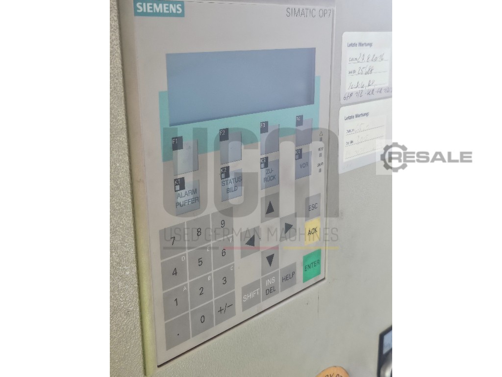 está equipada con un sistema de control PLC Siemens S7 y un variador
