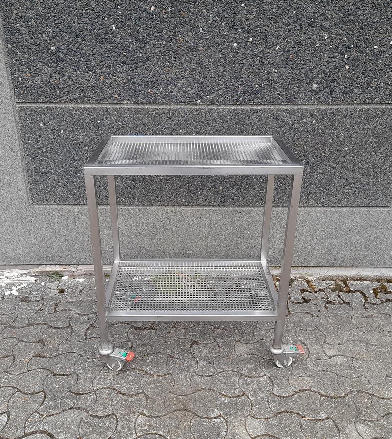 Stock number: D1216, Material: Stainless steel AISI 304, In stock: Yes, Amount in stock: 1 pc., Item: Table, Size: L 750 x W 450 x H 900 mm., Legs: 4 pcs. with wheels, Drain shelf: 1 pc.
