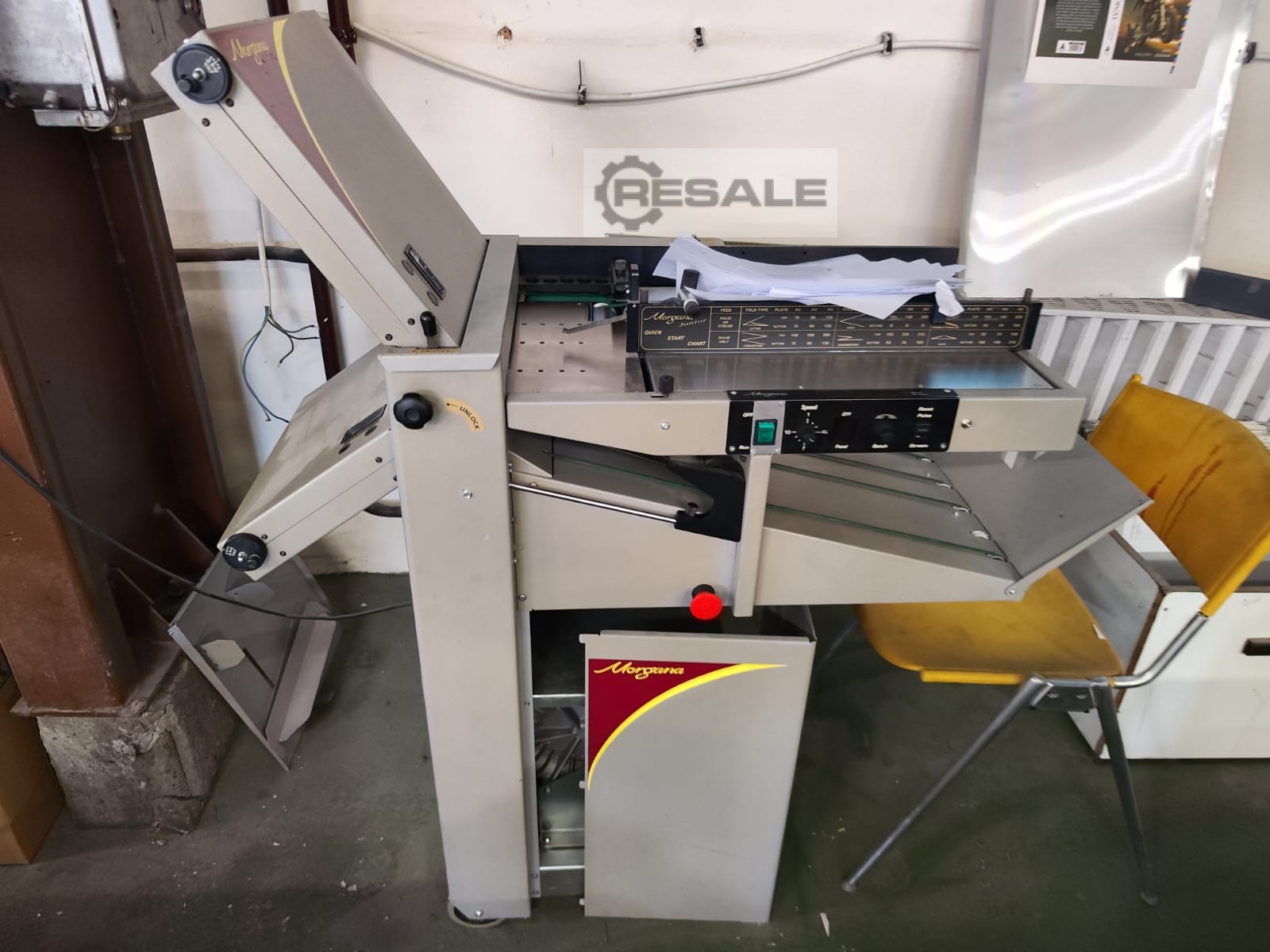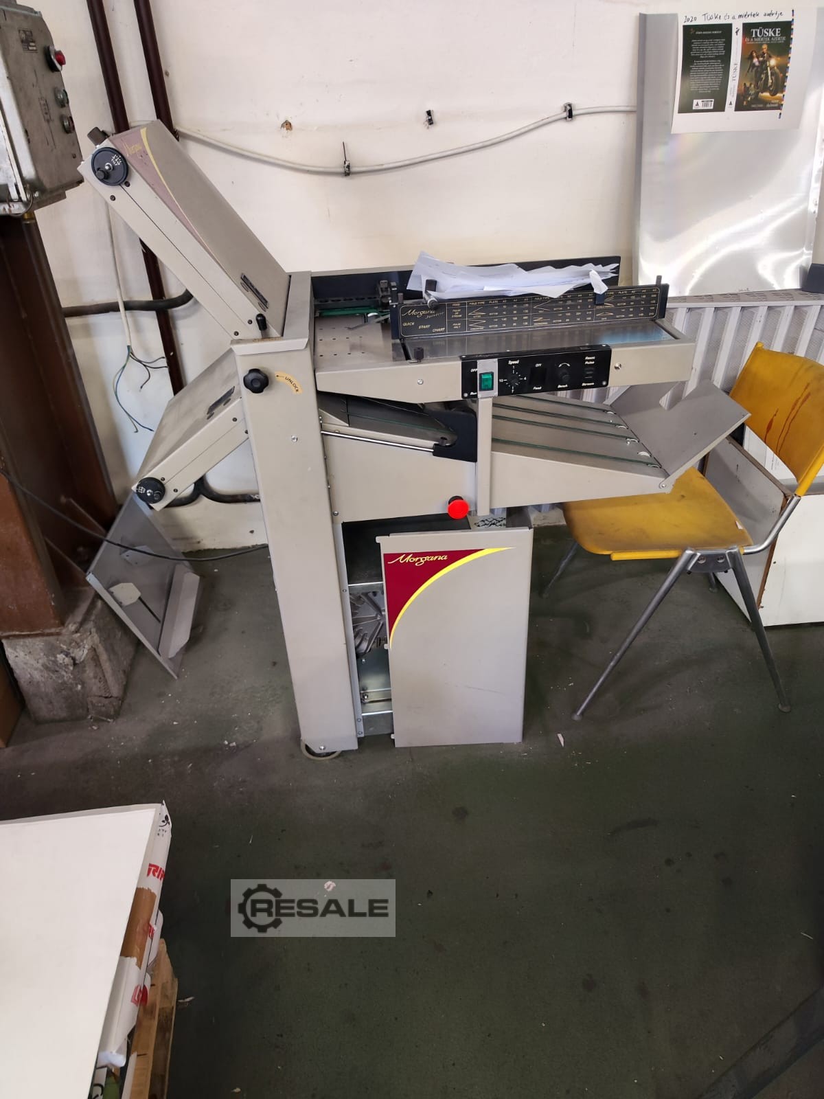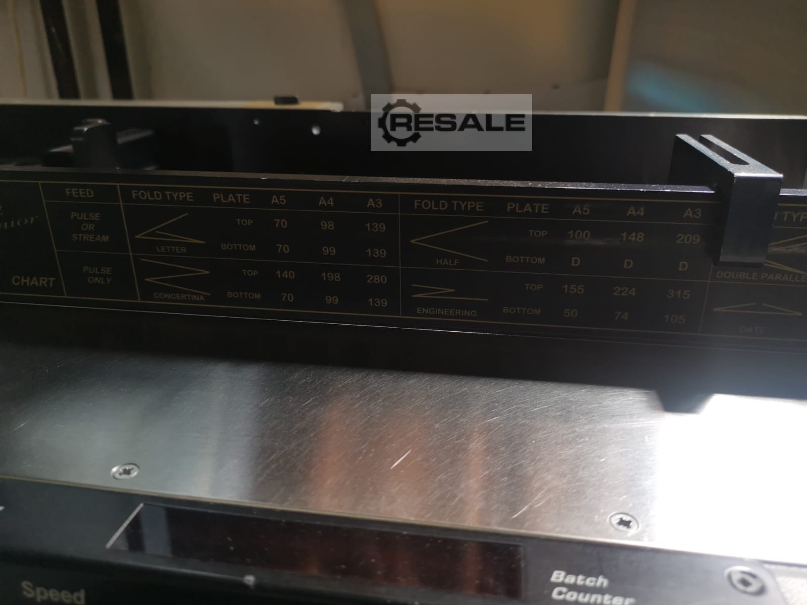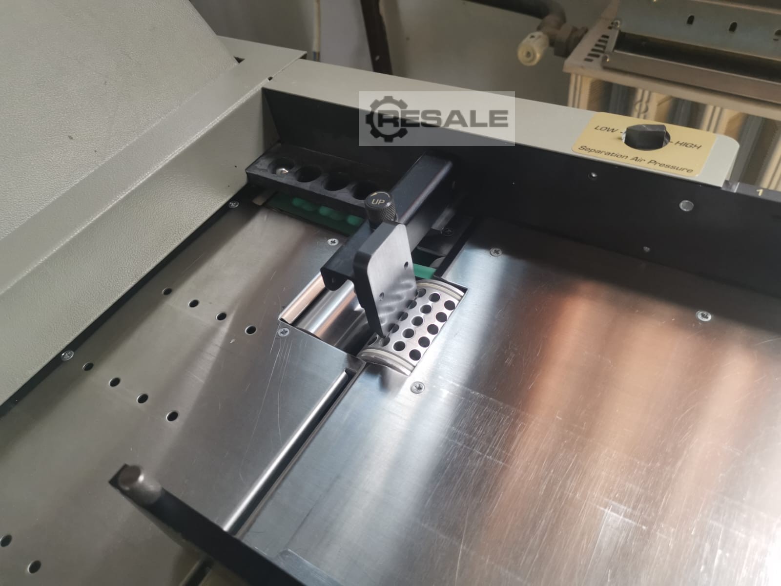 Máquina de doblar papel de alta velocidad, conteo y agrupación, ajuste digital de placas para lectura precisa, capuchas acústicas, 6 tipos de pliegues, hojas dobles y detector de atascos, alimentación por succión, completa A6341999 con unidad de perforación y A6341999 cuchillas de perforación, hasta 240 gsm, velocidad: 27000 hojas/hora