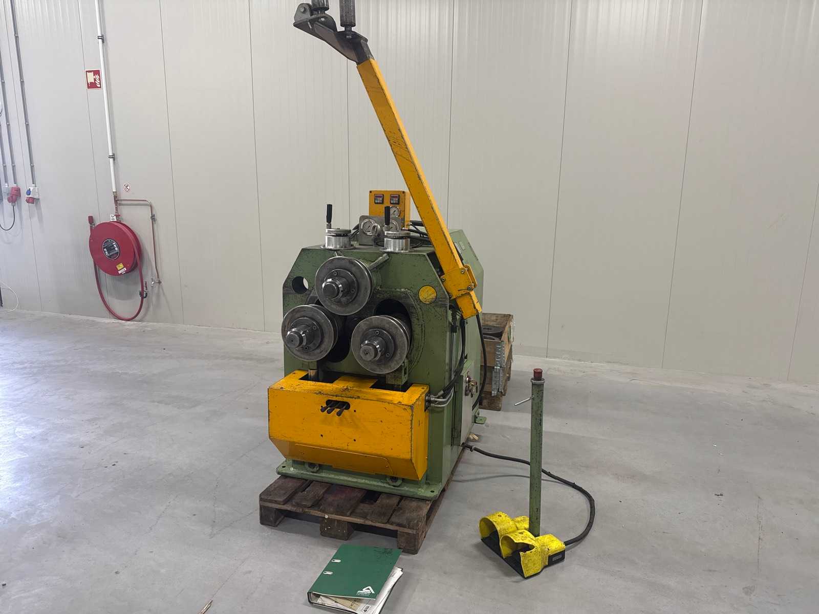 Horizontal and vertical Horizontal and Vertical Axis Ø 85 mm Number of rolls 3 Stroke X-axis 200 mm Moment of resistance 37 CM³ Capacity Down 80 x 15 x R = 800 mm Tube capacity 76 x 3.6 x R = 600 Ø x mm Capacity solid 45 x 45 x R = 600 mm T-profile capacity 8-0 x 8-0 x R = 800 mm Working speed 0 - 7000 mm/min.