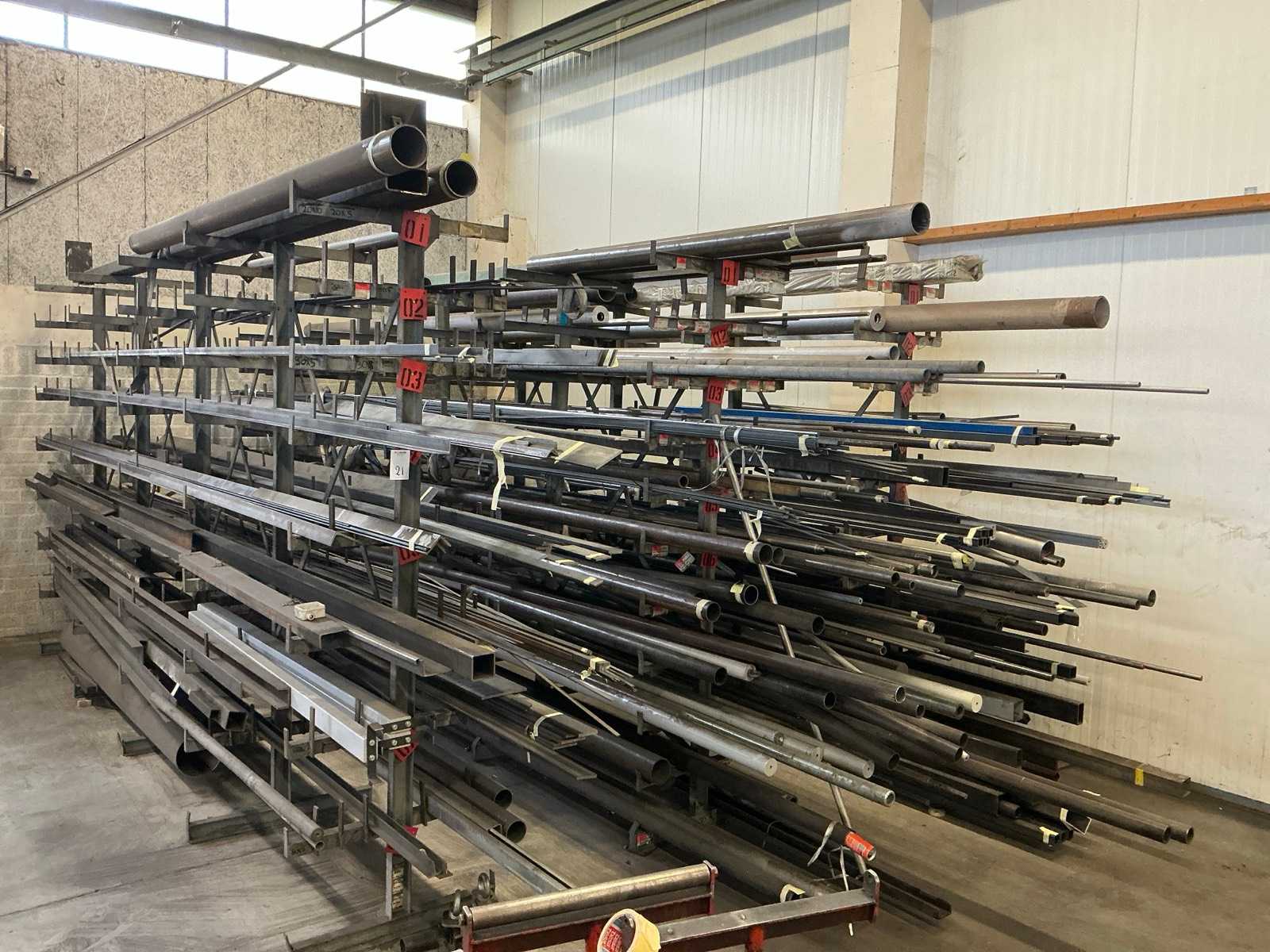 Consisting of 3 cantilever racks, 1x wall rack, including contents, including bar material and remnants