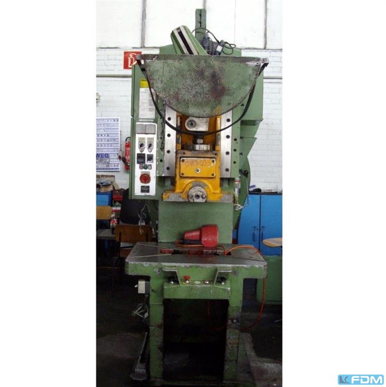 pressure:040 tstroke:8 - 50 mmno. of strokes:50 - 300 /mindistance between columns:600 mmdistance table/ram, max. stroke up, adjustment up:285 mmtable surface area:590 x 500 mmhole in the table:590 x 40 - 100 mmtable height over floor:860 mmcolumn travel -side:280 mmram surface:590 x 380 mmram adjustment:80 mmmaterial width of feeder:150 mmpower requirement:7,5 kWclutch:pneumatic ram adjustment:motoric pincer feed:mechanical