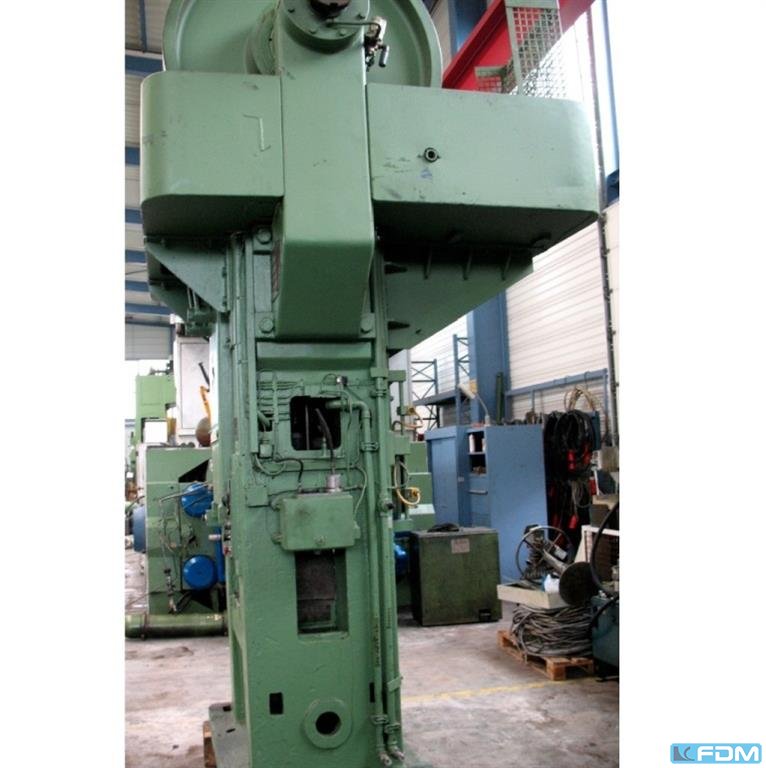 pressure:160 tthroat:360 mmstroke:200 mmdistance table/ram, max. stroke up, adjustment up:500 mmtable surface area:920 x 700 mmHole in the table:150 mmtable height over floor:960 mmpassage to the back:590 mmram surface:620 x 560 mmspeed down:390 mm/sspeed up:390 mm/sworking speed:58 mm/spower requirement:30,0 kWweight:16,0 tdimensions (WxDxH):1,6 x 2,5 x 3,6 mGerman Safety: permitted for manual loading:UVV 11.064 - VBG 7n5.2 depth stop:mechanisch