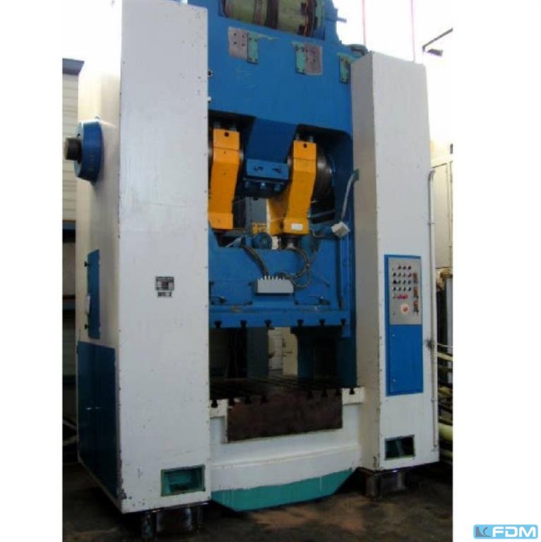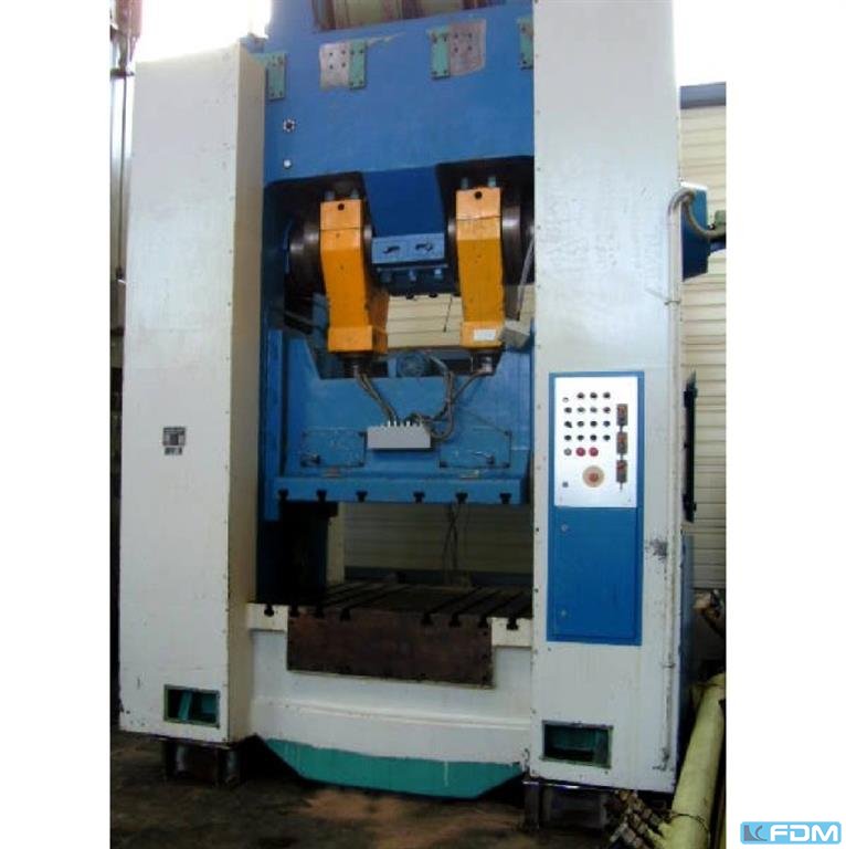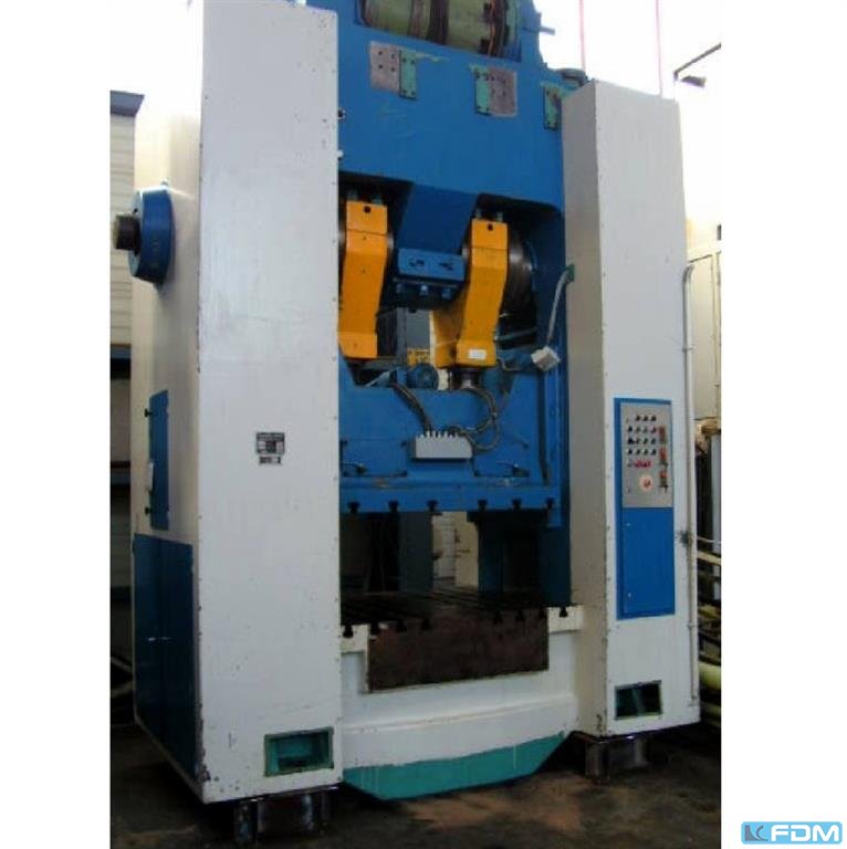 pressure:500 tstroke:40 - 160 mmno. of strokes:32 / 48 /mindistance between columns:1620 mmdistance table/ram, max. stroke up, adjustment up:660 mmtable surface area:1600 x 1300 mmtable height over floor:750 mmcolumn travel -side:400 x 430 mmram surface:1400 x 1200 mmram adjustment:120 mmmaterial width of feeder:1000 mmmaterial thickness of feeder:- 6,0 mmfeed length:350 mmpower requirement:44,0 / 66,0 kWweight:56,0 tDimensions (WxDxH):3,55 x 2,55 x 5,1/5,8 mheight beneath floor:0,3 mpneumatic clutch-brake combination:Desch Mechanical pincers feed:Obru, BVK 3.10.3
