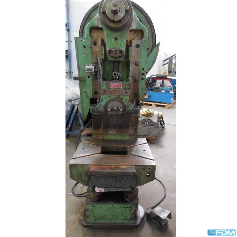 pressure:035 tthroat:225 mmstroke:8 - 100 mmno. of strokes:110 /mindistance table/ram, max. stroke up, adjustment up:400 mmtable surface area:580 x 460 mmhole in the table:250 x 150 mmtable height over floor:700 mmtable adjustable:230 mmram surface:355 x 120 mmram adjustment:70 mmpower requirement:2,2 kWweight:1,5 tdimensions (WxDxH):1,0 x 1,5 x 2,05 mclutch:rolling key overload protection in ram:mechanical