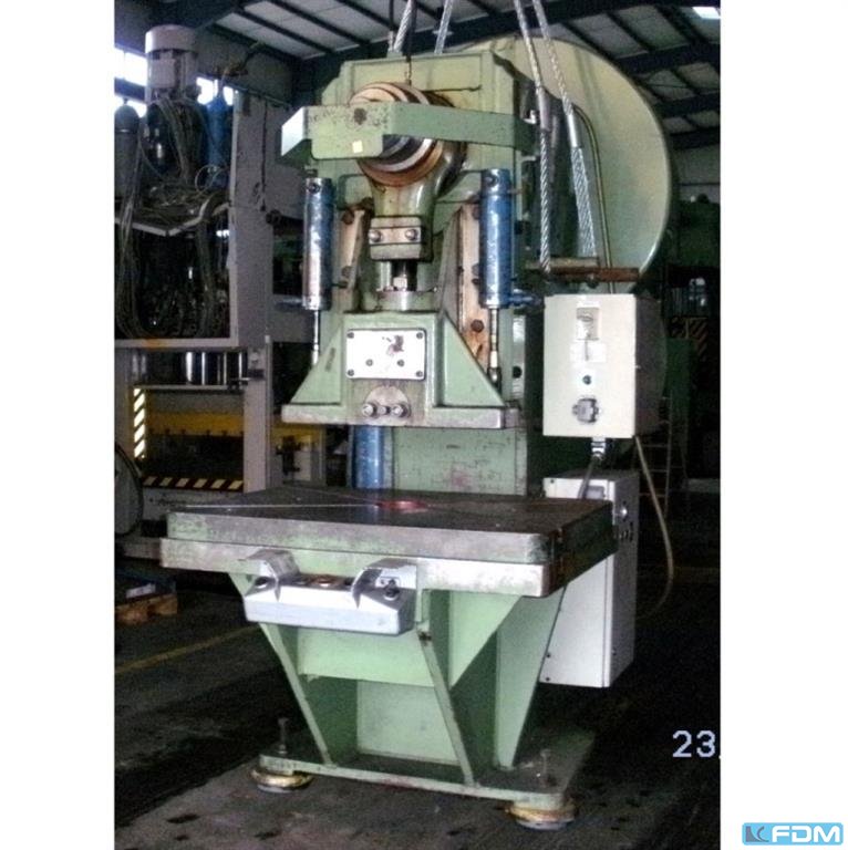 Pressure:063 tthroat:400 mmstroke:16 - 90 mmno. of strokes:60 /mindistance table/ram, max. stroke up, adjustment up:350 mmtable surface area:1000 x 750 mmhole in the table:260 x 140 mmtable height over floor:710 mmram surface:600 x 220 mmram adjustment:50 mmweight:4,3 tdimensions (WxDxH):1,1 x 2,6 x 2,4 mGerman Safety: permitted for manual loading:UVV 11.062 - VBG 7n5.1 clutch:pneumatisch overload protection in ram:mechanisch ram counterbalance:pneumatisch