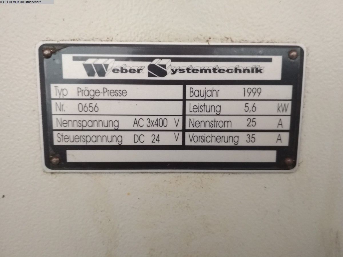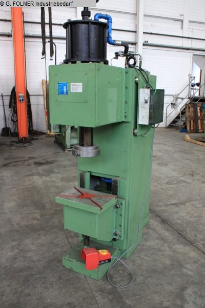 pressure:6,3 tthroat:210 mmstroke:200 mmdistance table/ram, max. stroke up, adjustment up:300 mmtable surface area:380 x 350 mmhole in the table:100 mmtable height over floor:1050 mmram surface:45 mmpower requirement:4,0 kWweight:0,8 tdimensions (WxDxH):0,8 x 1,2 x 2,6 mGerman Safety: permitted for manual loading:UVV 11.064 - VBG 7n5.2