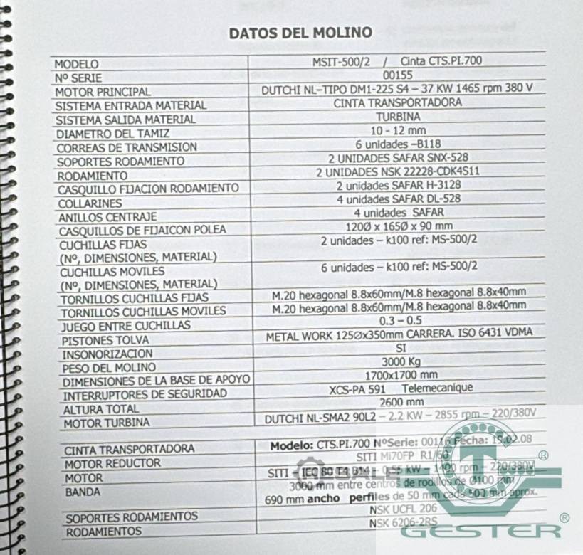 Tipo de máquina: MF-0173 Molino triturador de cuchillas