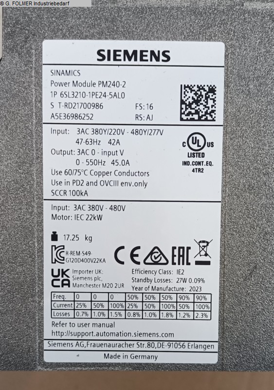 Modelo:6SL3210-1PE24-5AL0 SIEMENS