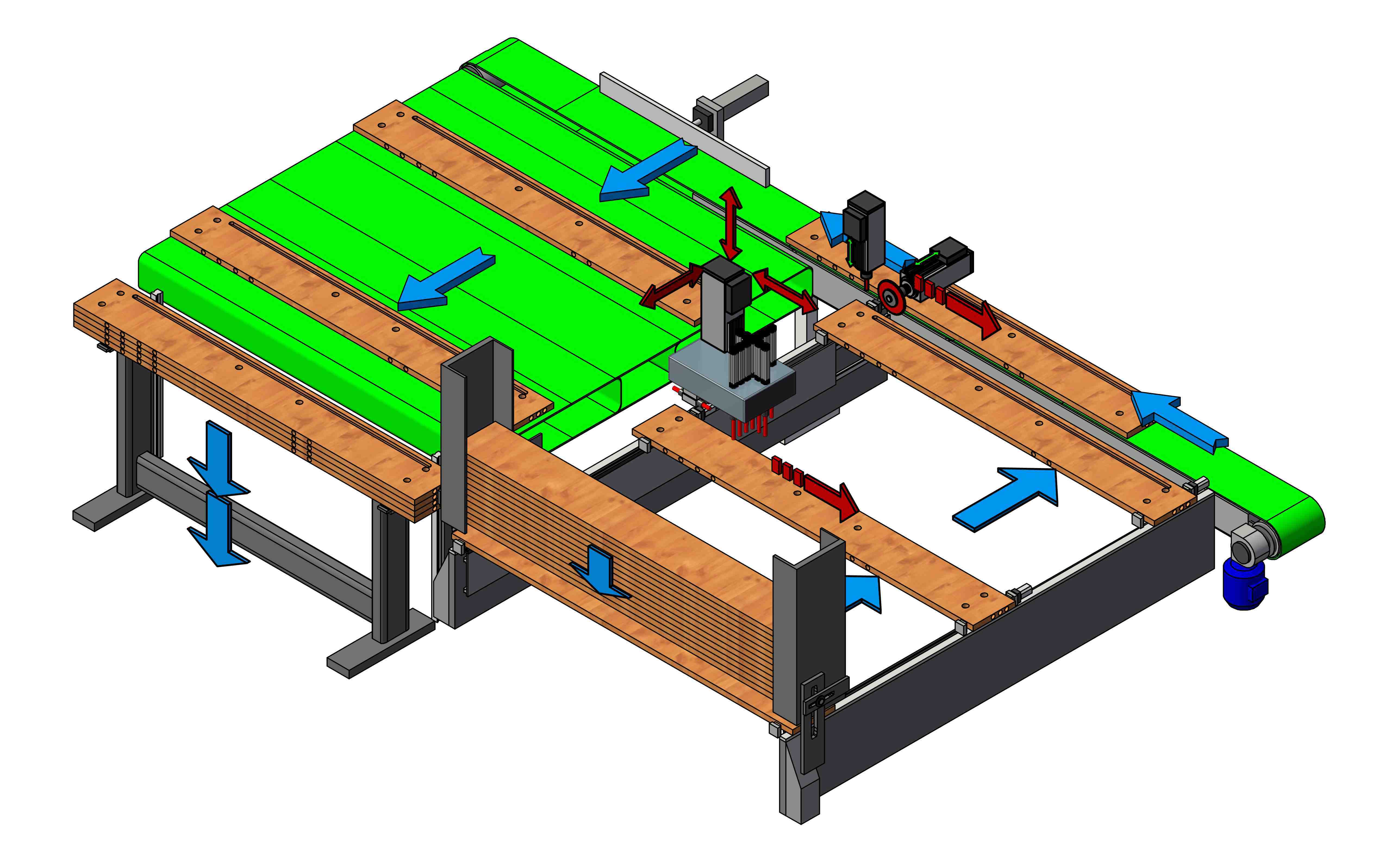 Manufacturer: Homag, Type: FL 20/07/15/S, Year: 2003, Destacking plant: PC 21, Vereinzelung: Woodline, Software: yes, Maschinensteuerung: 220 - 1500, Machine no 1: 220, Motore Maschine 1: 8 - 90, Machine 2: yes, Motore Maschine 2: 500, Kantenversiegelung: 10- 40, Conveyor: yes, Trittschal: max 110, Einlegstattion in Kartons: 25 mm, Min.-max. workpiece height in mm: 11, Working width min-max mm: yes, Working hight min-max mm: 6,6, Machine with controlled dogs: yes, Cam distance mm: 6,6, Feeding speed min-max m/min: yes, Feed stepless: 11, Min-max protrusion of workpiece mm: yes, 3 Engine power kW: Mittelschnitflasch Arbeitsbreite 300 - 500 mm, Year :2003
