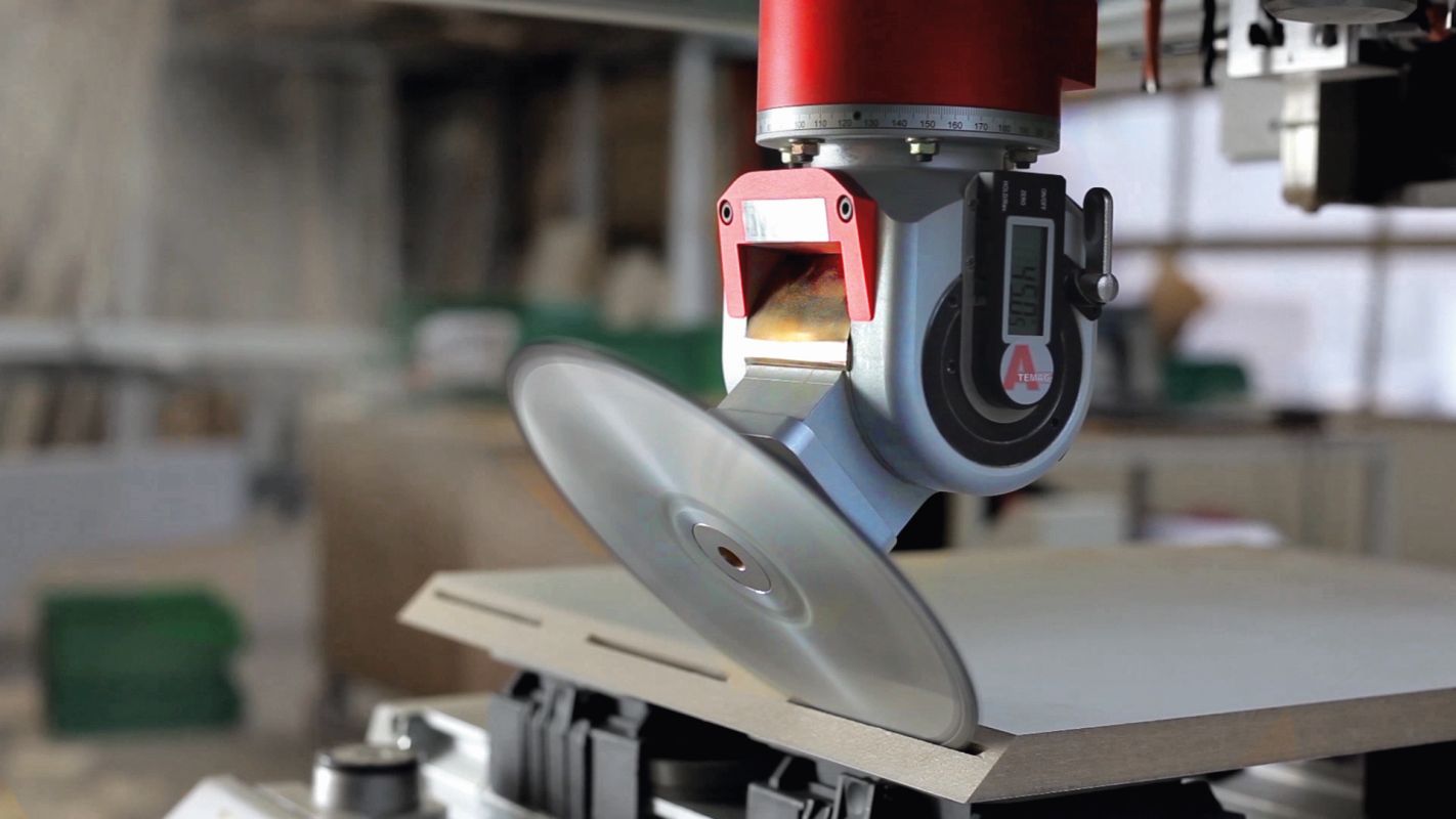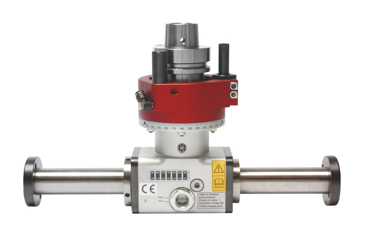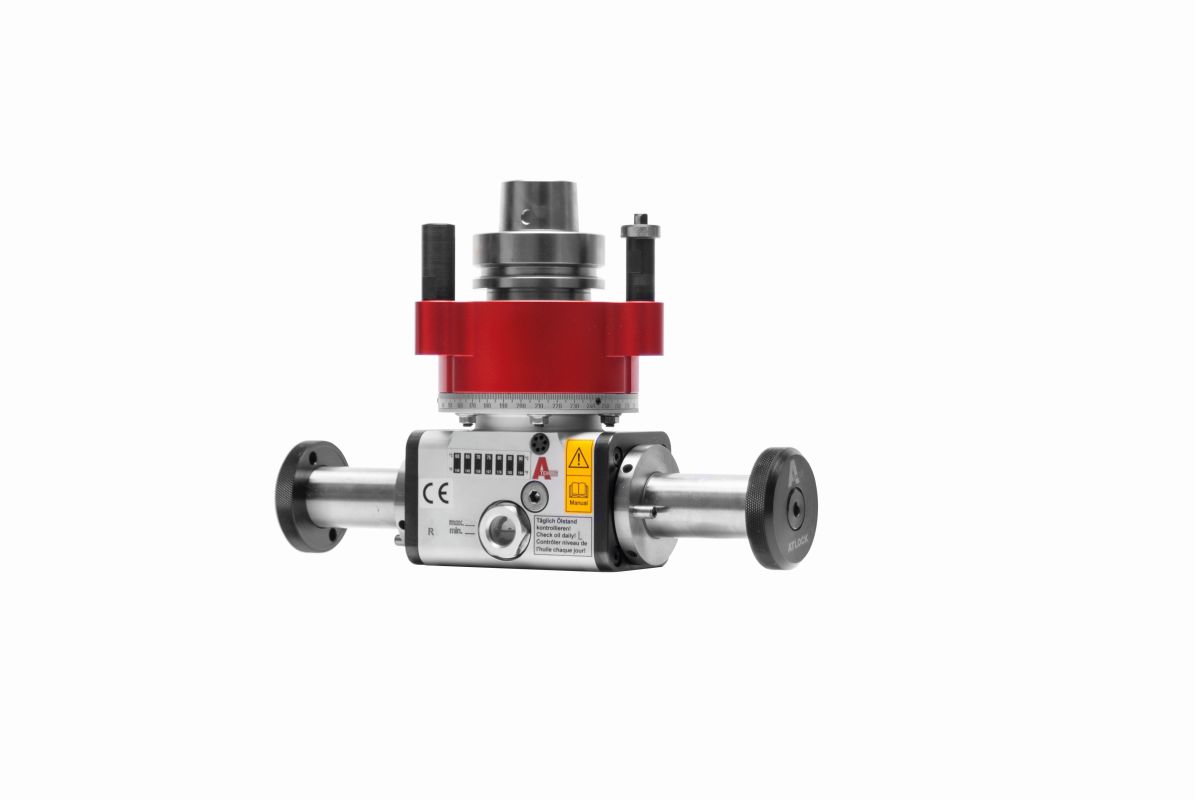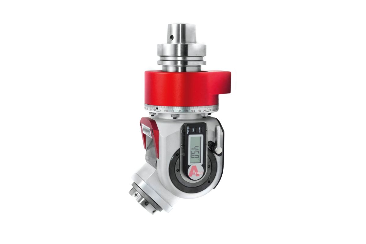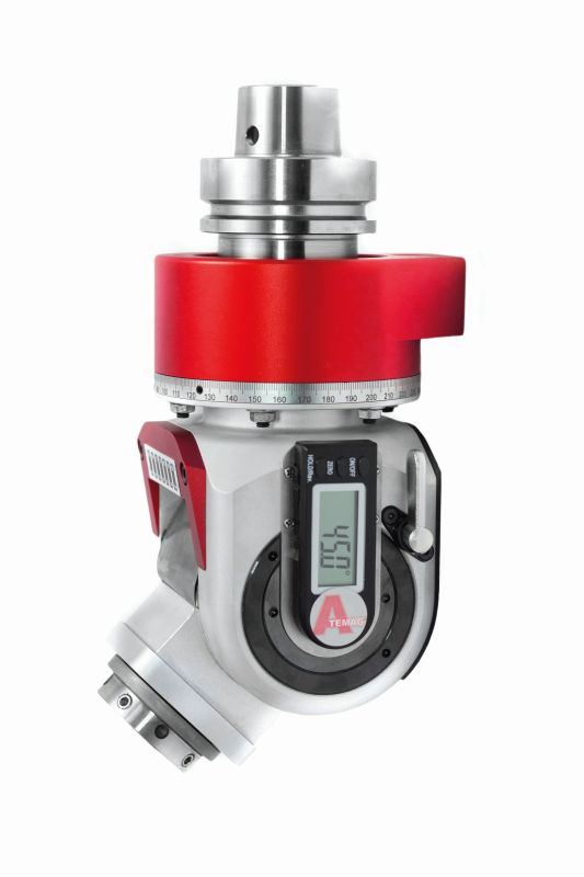 CNC unit for boring, routing and sawing Brand: Atemag Type: Function Line Vario Viso With adjustable angle 0 - 100° Max. drive speed 15,000 R.P.M. Max. tool spindle speed 15,000 R.P.M. Gear ratio i = 1:1 Turning direction left/right Torque max. 15 Nm Tool interfaces: combination ER 25 and saw, saw blade flange 30 mm Version with one single clamping screw, locking with the lever
