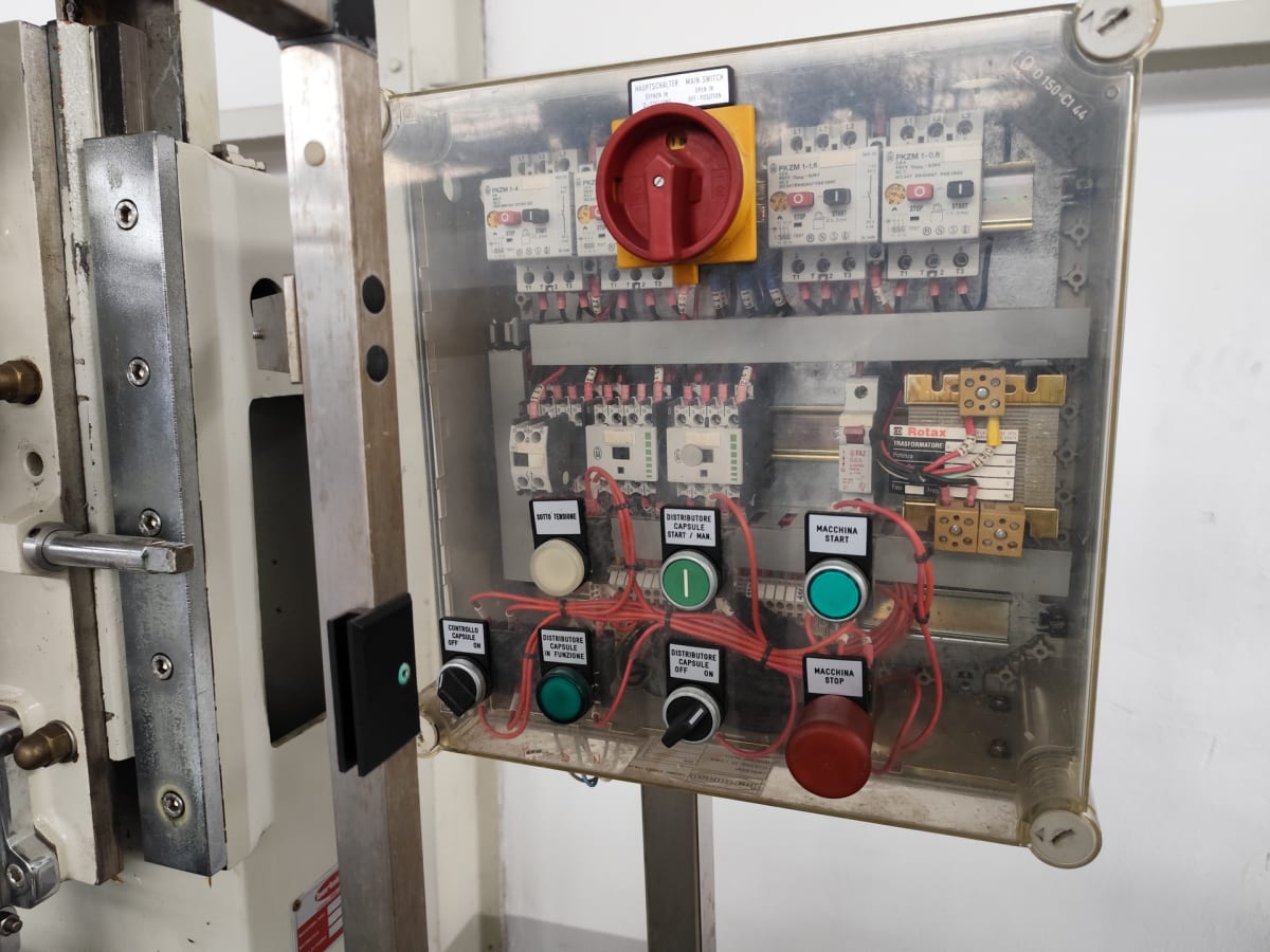 Overview: The ENOS Eticap is a fully automatic labelling machine designed for the application of wet-glue labels on cylindrical bottles. Built by the Italian manufacturer ENOS and delivered in 2008, the system was used in production until 2020 and has since been taken out of service and stored. The machine is equipped with two wet-glue labelling units: one for front and neck labels and one for back labels. The conveyor system supports left-to-right operation. Technical Data: manufacturer: ENOS, Italy model: Eticap year of manufacture: 2008 labelling Heads: 2 (wet-glue heads) Head 1: front and neck labels Head 2: back labels operation Direction: Left to right production Capacity: 4.000/h adjusted for: cylindrical glass bottles 0,7 L = Ø75mm 1,0 L = Ø86mm condition: Stored off-line since 2020, machine in a good condition actual label sizes: front label: 131mm height, 77mm width back ...