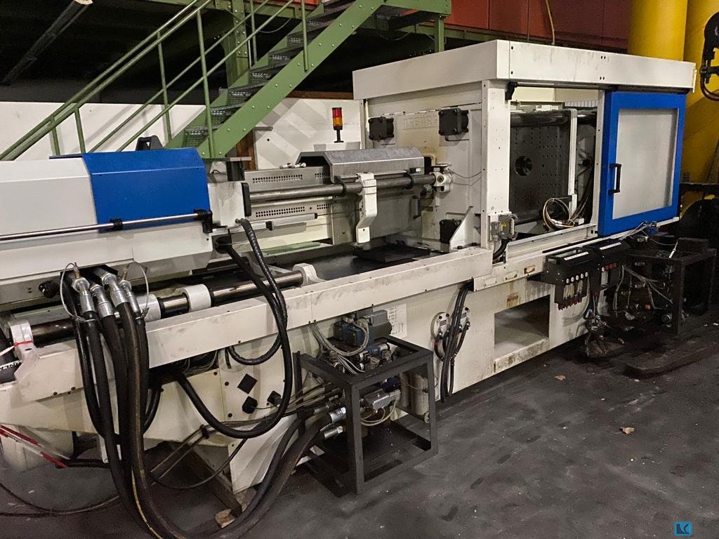 Fuerza de sujeción: 430 toneladas; cierre de palanca; paso de columna: 760x680 mm; tornillo: 60mm; control B&R Columbia; Nº 2 gatos neumáticos y 2 gatos hidráulicos; Soplo de aire nº 1; Euromap 12. Número de serie: 364-112Peso estimado: 19500 kg Dimensiones aproximadas: 8200x1950xh2600 mm Auction-ID: A7-44996-26