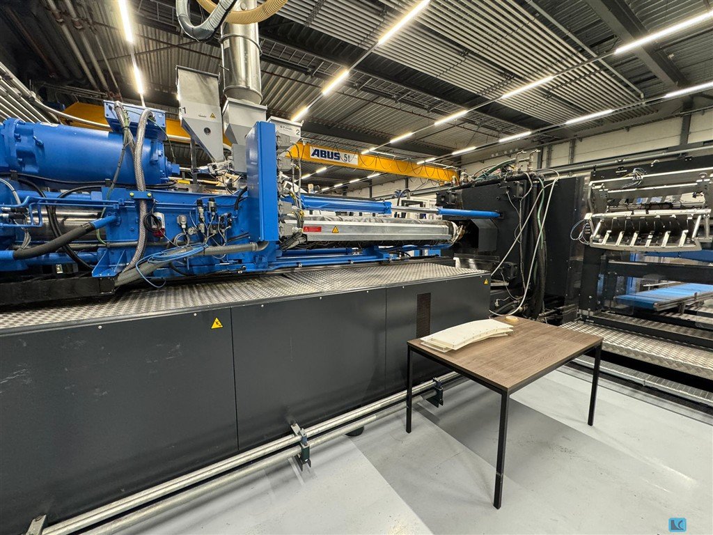Número de serie: 61008334 • Potencia: Desconocida • Estado: Usado • Notas adicionales: Configuración multiinyección visible; máquina equipada con unidad adicional de inyección vertical y carcasa de seguridad; Marcado CE. Peso según la matrícula del fabricante. • Fuerza de sujeción aprox. 175 toneladas; de la clase de 160 mm de diámetro de tornillo; Diseñado para moldeo por inyección termoplástico. Auction-ID: A7-40551-16