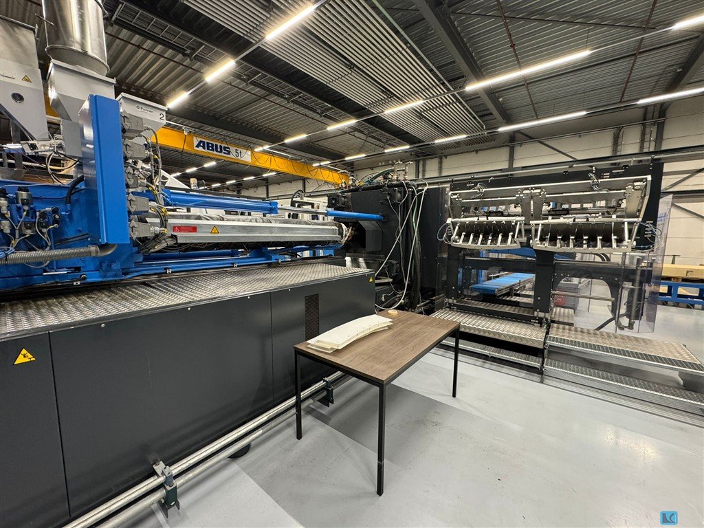 Número de serie: 154812 • Potencia: 400 V, 3 fases, 50 Hz • Estado: Usado • Notas adicionales: Datos eléctricos por placa de nombre: corriente total 107 A; fusible principal 125 A; corriente del motor 60 A; Marcado CE. Equipado con equipos periféricos de manipulación visibles (transportadores, unidad de control de temperatura, mangueras de material) Auction-ID: A7-40551-17