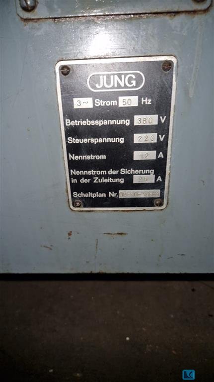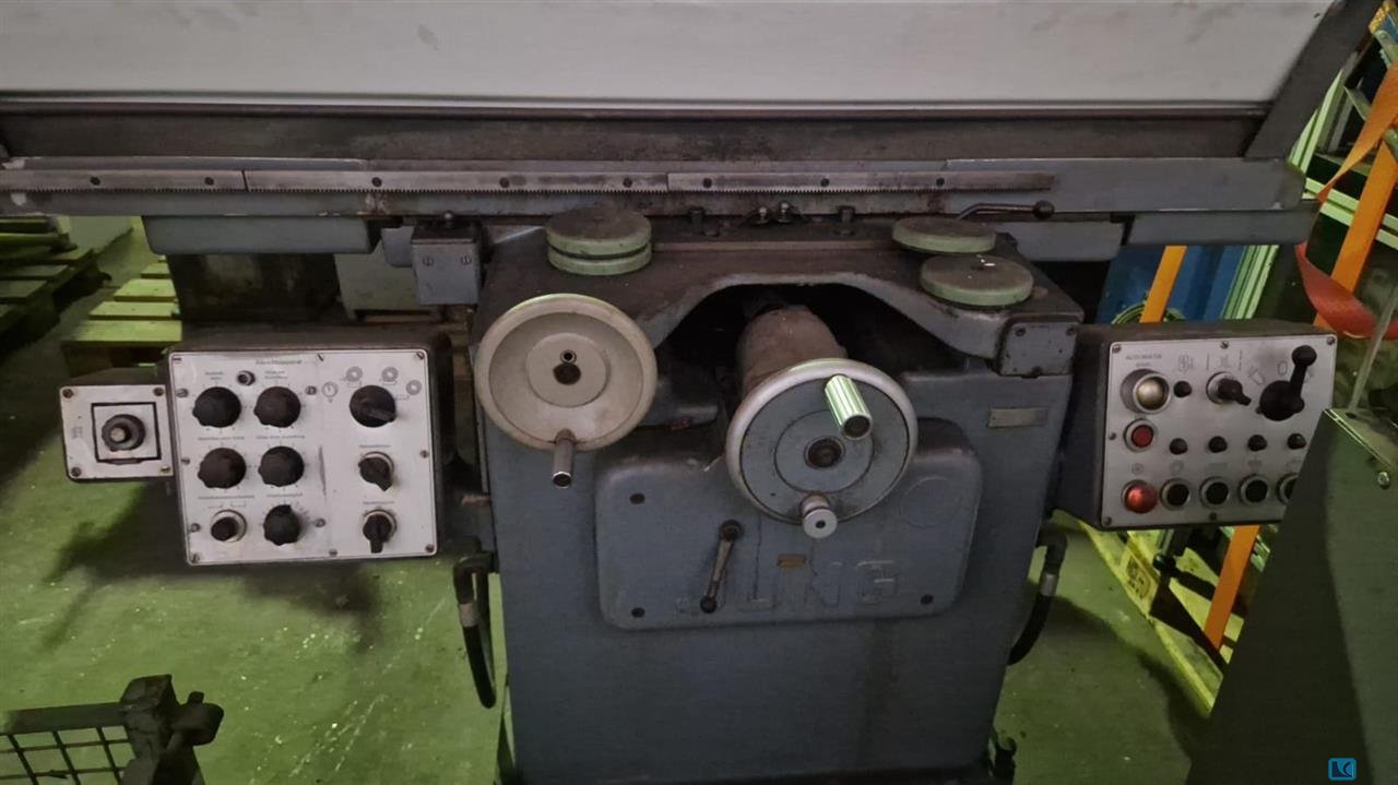 grinding length:1250 mmgrinding width:400 mmworkpiece height:550 mmworkpiece weight:750 kgtable-size:1720 x 400 mmmagnetic clamping plate:1250 x 400 mmdist. center of grinding spindle - table:750 mmturning speed range - grinding wheel:3000 U/minLength movement of the table:1300 mmgrinding wheel size:Ø 400 x 50 x 127 mmswitchgear cabinet:inkl. hydraulic power unit:inkl. coolant:inkl. voltage:380 Vtable load:max. 1100 total power requirement:13,8 kWweight of the machine ca.:6000 kgdimensions of the machine ca.:5000 x 3400 x 2400 mmDocuments:inkl.