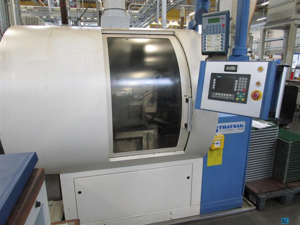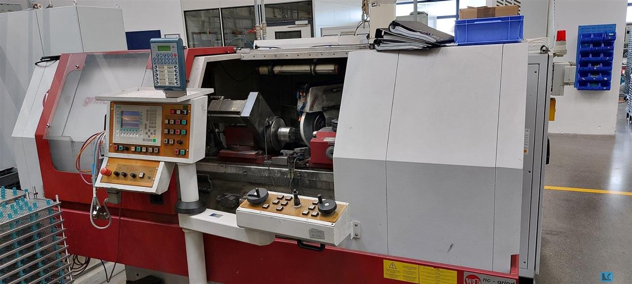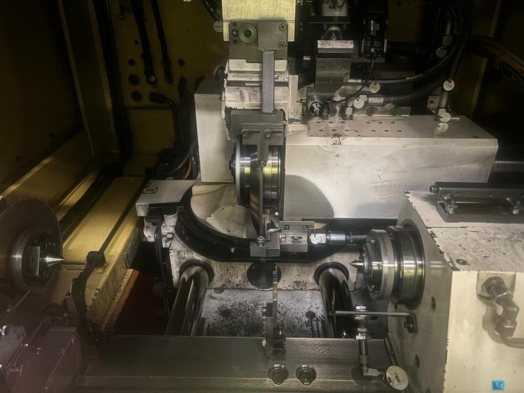 grinding diameter:5-55 mmgrinding length:500 mmtotal power requirement:44 kW-- Intended use and general information --Fully automated external and surface grinding of synchronous ringsCentre height: 200 mmGrinding length: 500 mmGrinding wheel arrangement: right, 30° angled Grinding wheel dimensions: 600 x 30 x 203.2 mmDrive power: 7 kW X/Z axis drive: ball screw Travel speed: 0.01 - 10,000 mm/min. Resolution: 1 µm Concentricity of workpiece spindle: < 1 µmWorkpiece changing system: Fanuc robot Control: Siemens Sinumerik 840-DMachine weight: 7,000 kgCentre height: 200 mmGrinding length: 500 mm