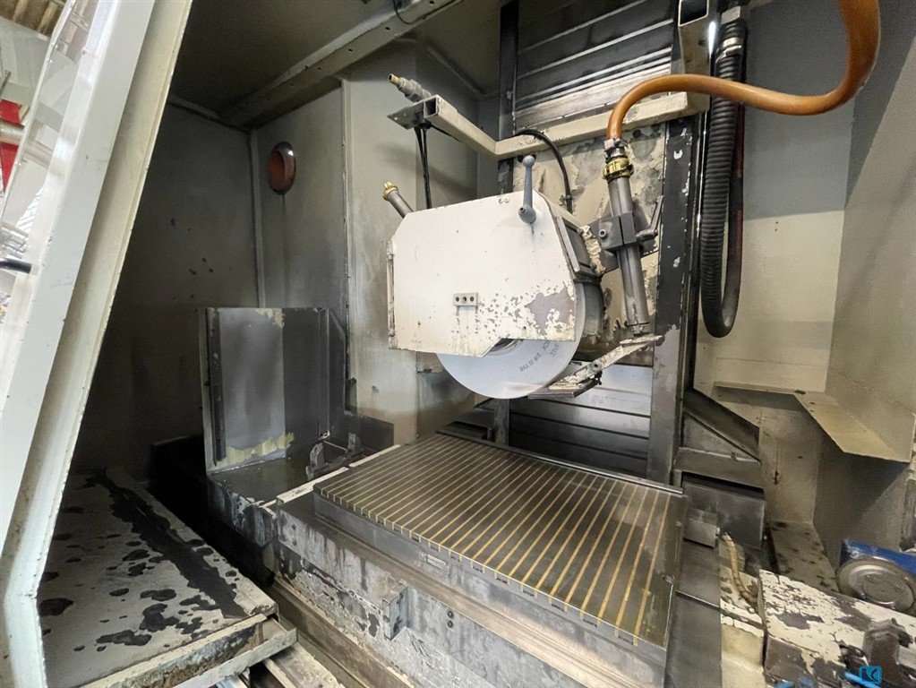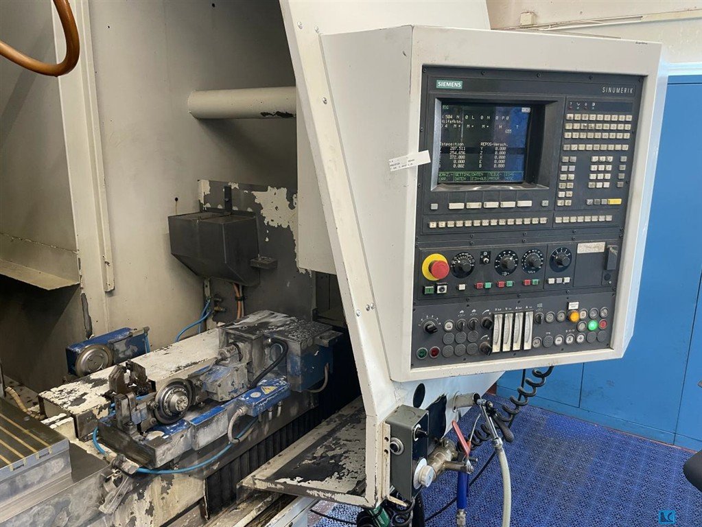 grinding length: 1025 mmgrinding width: 520 mmworkpiece height: - mmControl: SINUMERIK 840 D tool taper: HSK-A 63 A - axis: + 110 / - 5 °workpiece weight: 30 kgdistance grinding spindle - table min./max.: 473,5 - 1023,5 mmx-axis: 520 mmy-axis: 550 mmz-axis: 1000 mmV-axis: 166 mmfeed x-axis: 4 - 6.000 mm/minfeed y- axis: 4 - 4.000 mm/minFeed z- axis: 30 - 25.000 mm / min.table dimensions: 1.400 x 874 mmspindle speeds (infinitely variable): 0 - 12.000 U/minpower capacity - grinding motor: 35,00 kWgrinding wheel diam. min/max.: 100 / 300 grinding wheel width: 60 mmtotal power requirement: 100,00 kWweight of the machine ca.: 11,00 tdimensions of the machine ca.: 8,60 x 7,25 x H3,80 m5 Axis Profile grinding machine, with SIEMENS SIN840D,double dividing head (B-C axis), V-axis (coolant nozzles),EROWA tool changing device (machine can also be operated withouta tool changer), fire extinguishing ...