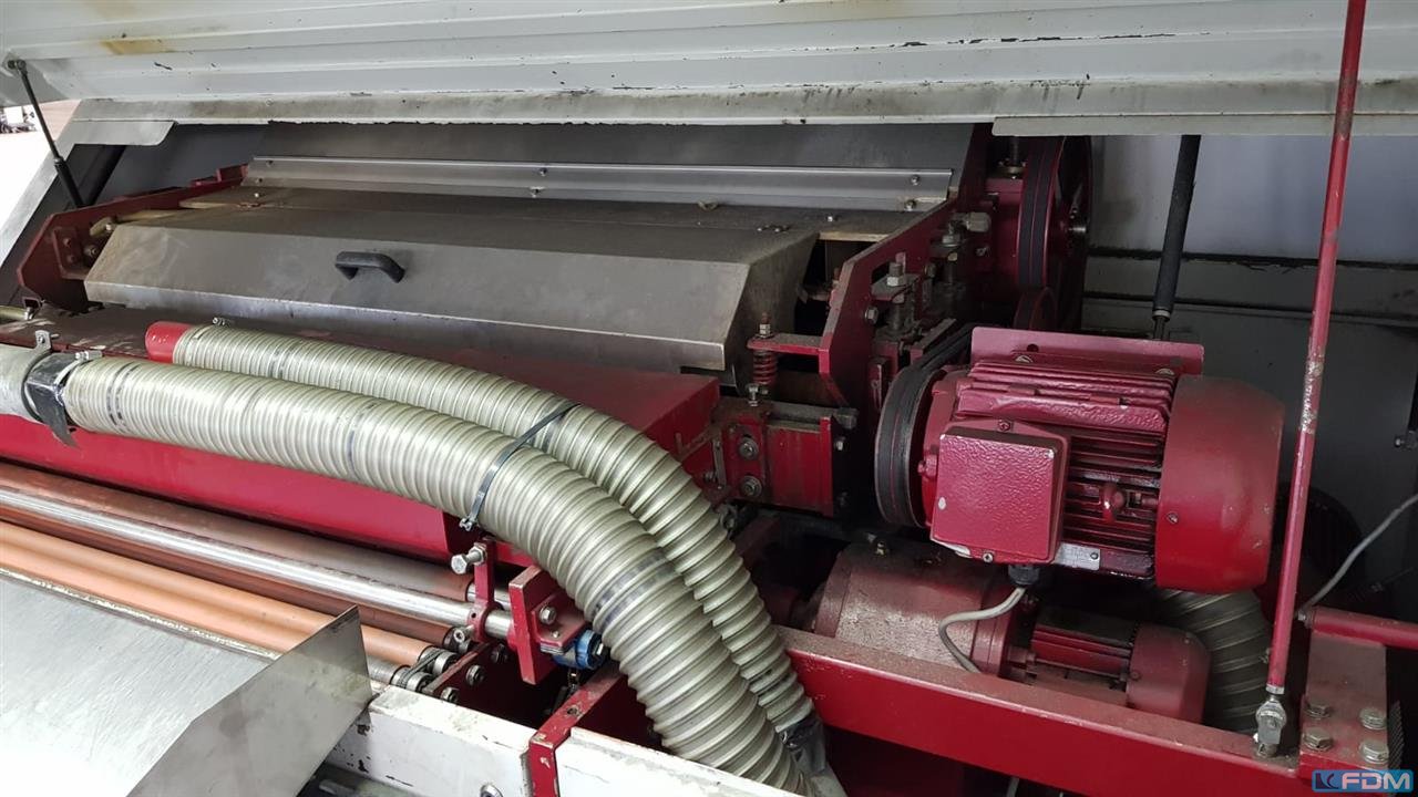 working width:880 mmworkpiece height:1- 70 mmwork height max.:1000 mmFeed speed:4- 8 m/min.voltage:50 Hz, 400 Vweight of the machine ca.:2.800 kgdimensions of the machine ca.:2500 x 1715 x1675 mmwidth:min. 350 mmSanding cylinder diameter:420 mmelectr. connected load:20 KWRequired air-pressure:1 x R3/ 8 " pressure:5 bartank:des Bandfilter ca.200 lautomatic magnetic filter unit:vorhanden grinding tools:1540 x 900 mmaccessories::9 Bänder Documents:vorhanden