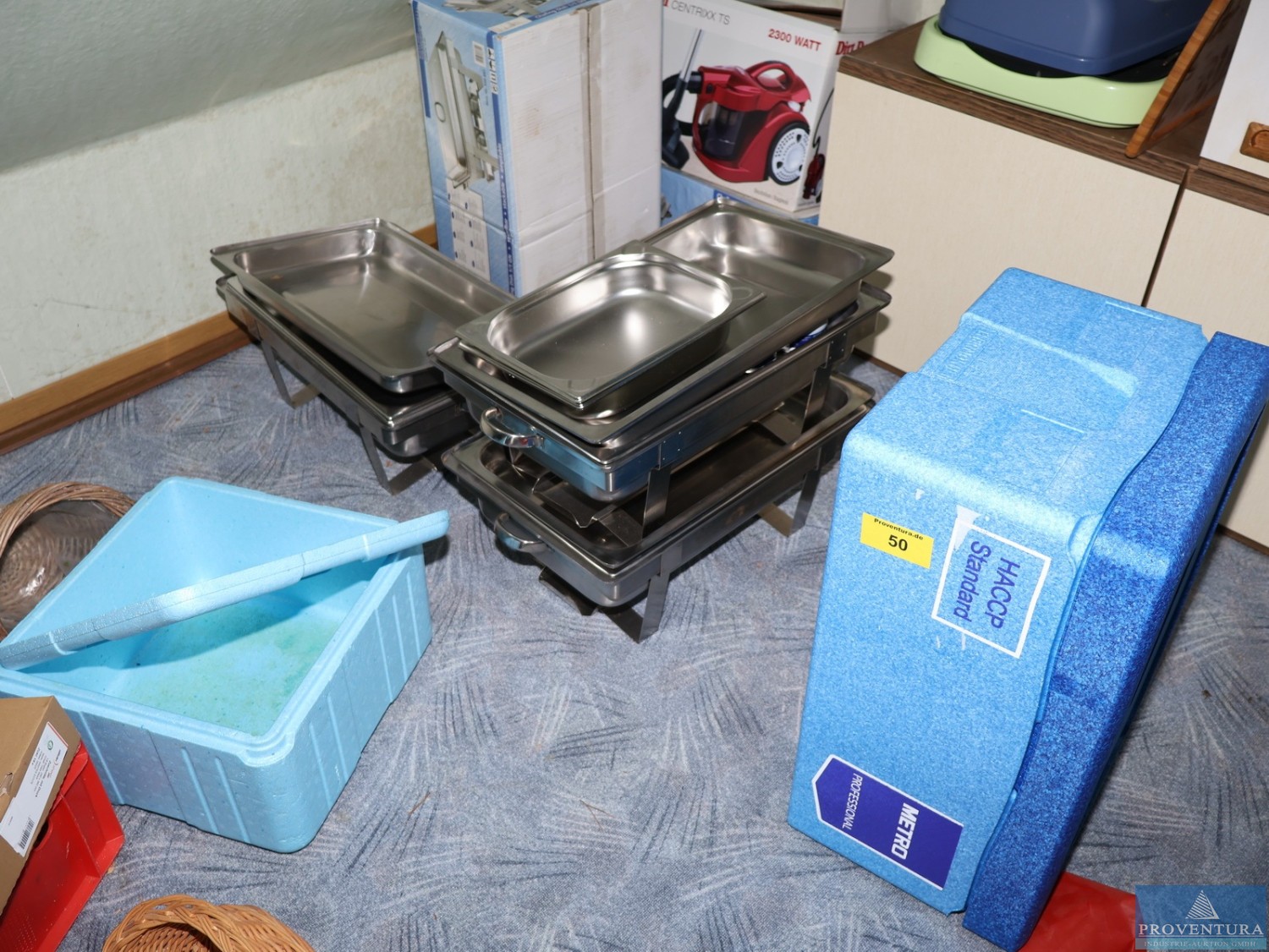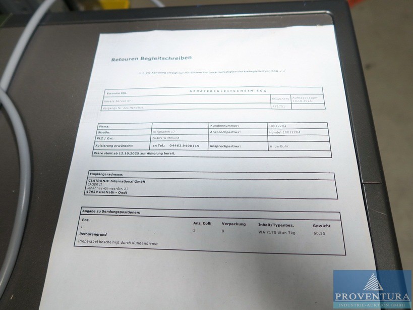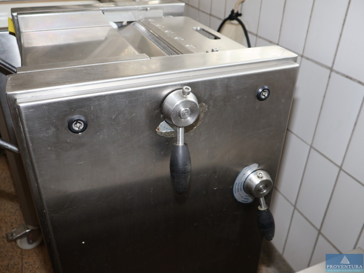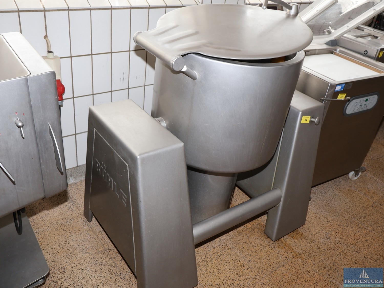 The ventilation system was used to extract kitchen exhaust air. The system is weatherproof and can therefore also be installed outdoors., Additional title: Fan for air exchange, Flow capacity: 20000 m³/h, External compression: 600 Pa Total compression: 734 Pa, Fan revolution: 1160 1/min, Noise level next to the unit: 58 dB(A) in 1 m distance, Power: 5,82 kW (inkl. Frequency converter), Motor 7,5 kW, Current: Motor-electric power 16,01 A, Voltage: Motor-Voltage 3 x 400 V, Frequency: 53 Hz, Length: approx. 4070 mm, Width: approx. 1630 mm, Height: approx. 1810 mm, Weight: 1200 kg, Operation / Control: controlled via wall mounted cabinet with integrated controllers, Material: Stainless steel cabinet, Features: Fan (free spinning wheel), Frequency controller, electrical cabinet, bird protection (780 x 780)