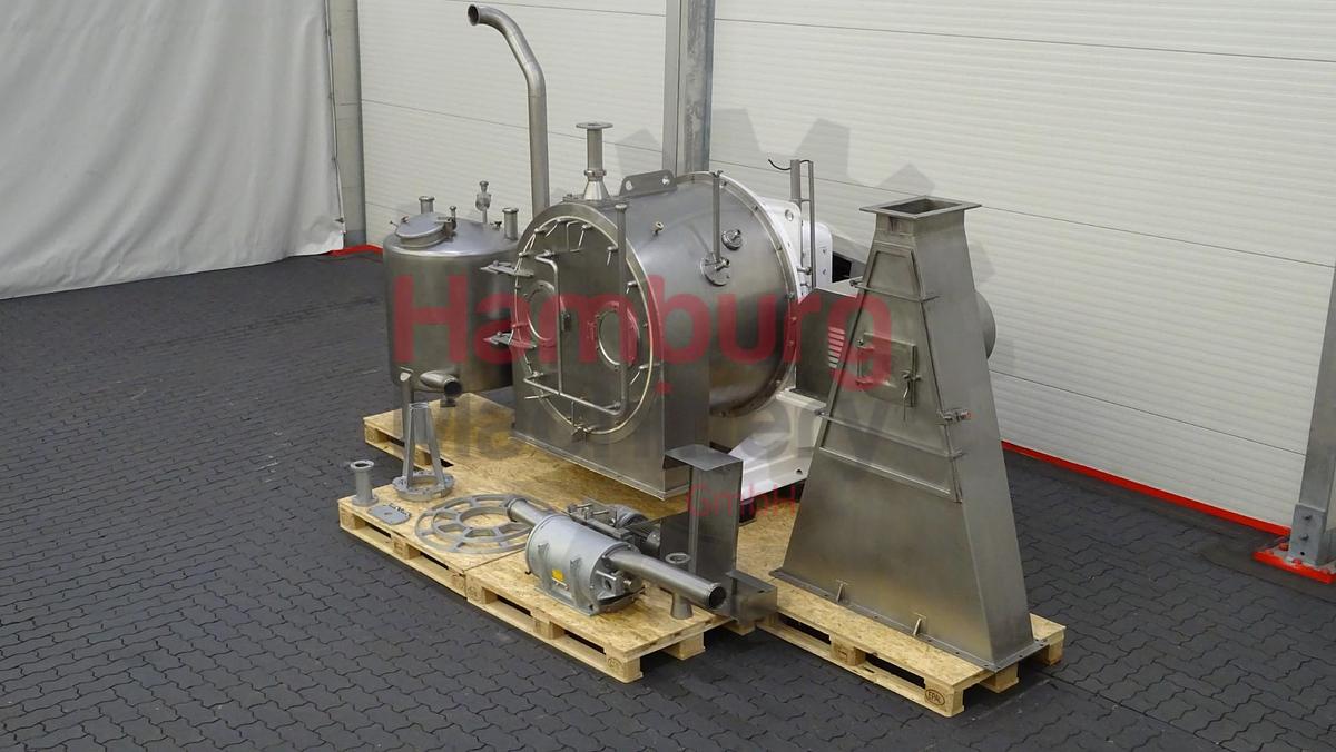 The Siebtechniek CONTURBEX is a continuously operating filtration centrifuge and it achieves his flexibility by means of a centrifuge scroll driven at a differential speed. The unique functional principle of pre-accelerated suspension feed to the screening device, combined with homogeneous distribution by means of the worm, enables this centrifuge to perform complex tasks. We achieve optimum dewatering results by adapting the machine parameters, G force and dwell time. The solid material is conveyed by means of a worm rotating at a different speed from the bowl. Solid and liquid are conducted away into separate housing sections. Mother liquor and washing liquid can be drained away separately from each other. The drive for the SIEBTECHNIK screen worm centrifuge stands out for its powerful gear units and a high-quality bearing support. A central oil-circuit lubrication system supplies all ...