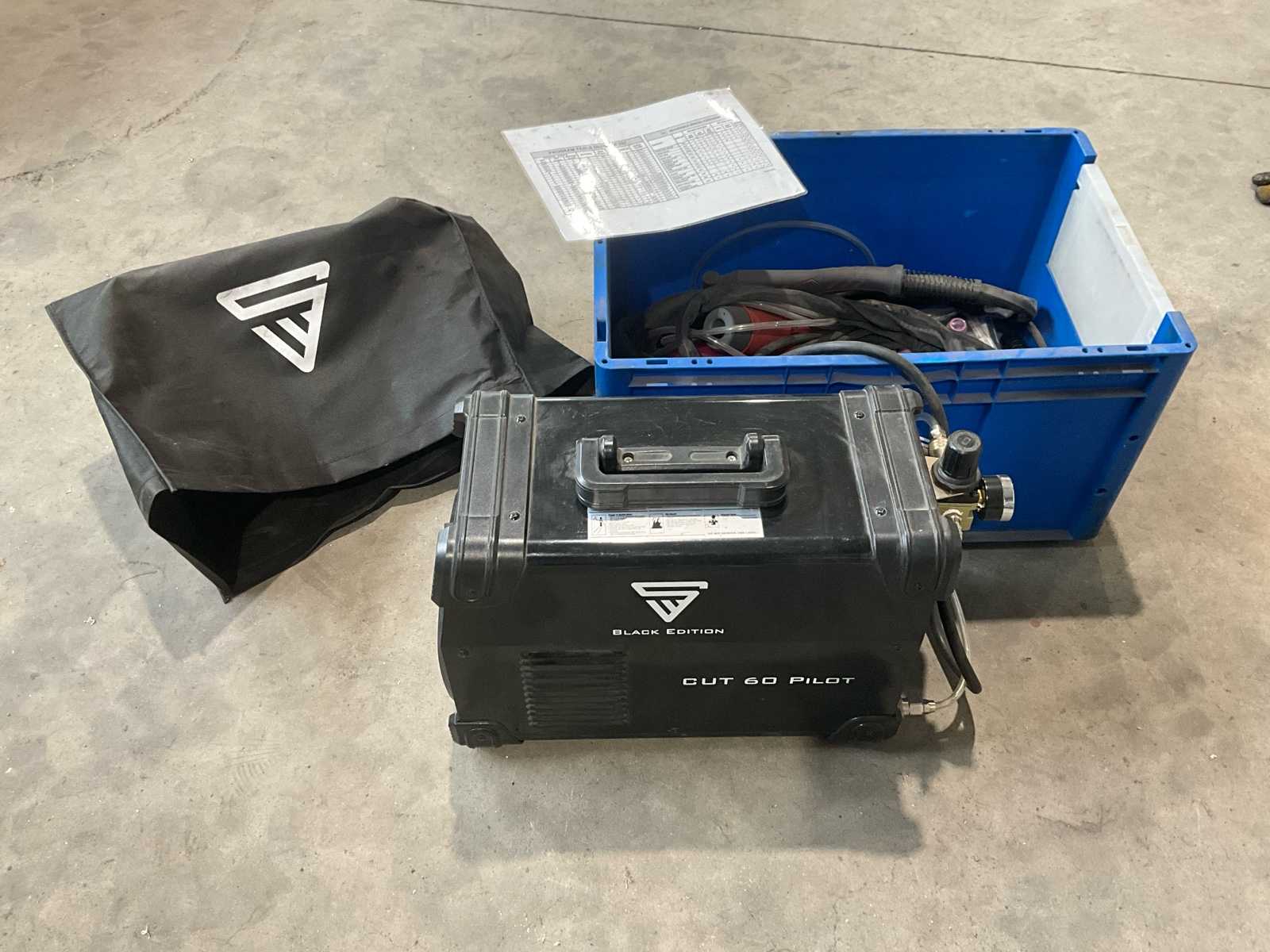 plasma cutter CUT 60P (Pilot arc) in neat, working condition. Ideal for cutting steel, stainless steel and aluminum - Comes with: Plasma burner (torch), Ground clamp, Hoses and cables, Pressure regulator / air filter, Storage box with accessories, Protective cover ✅ Condition: Working and tested
