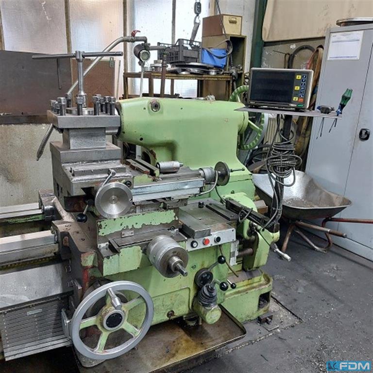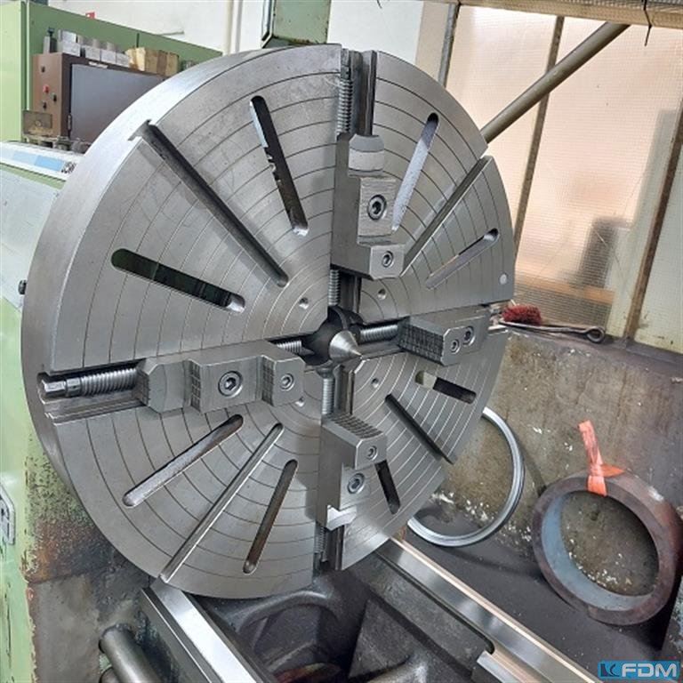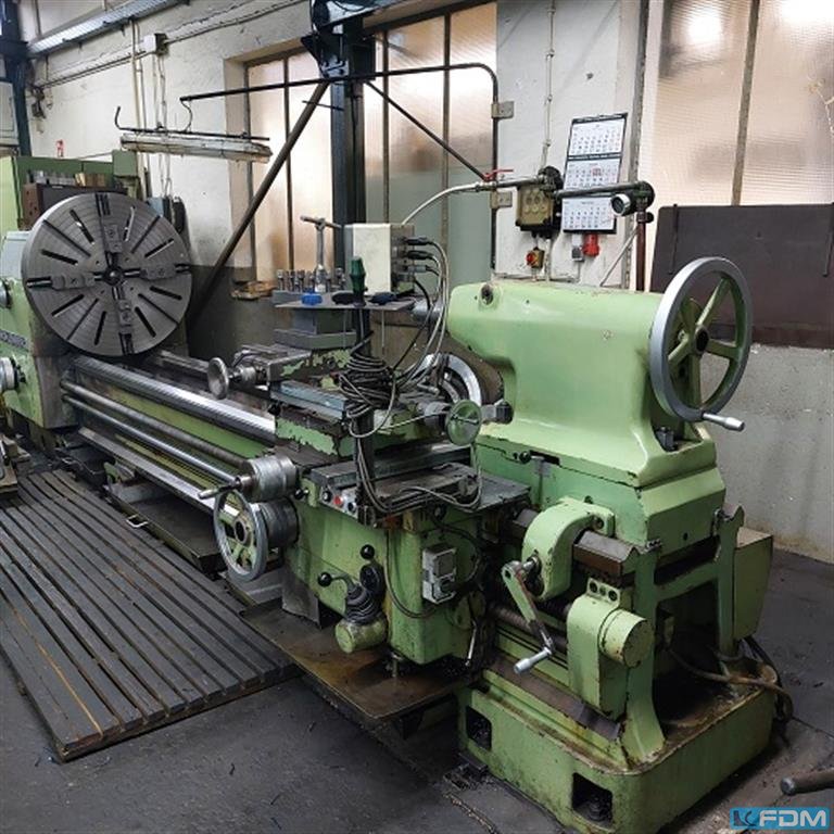 turning diameter over bed:1000 mmturning diameter over slide rest:750 mmturning length:3000 mmweight of the machine ca.:12 tdimensions of the machine ca.:6x2,5x1,8 mspindle bore:110 mmturning speed range:900 U/minYear:1986 Equipment:- Coolant device- 1 static steady rest- 1 rotating steady rest- Faceplate 1.000 mm- Digital display- Rapid traverse