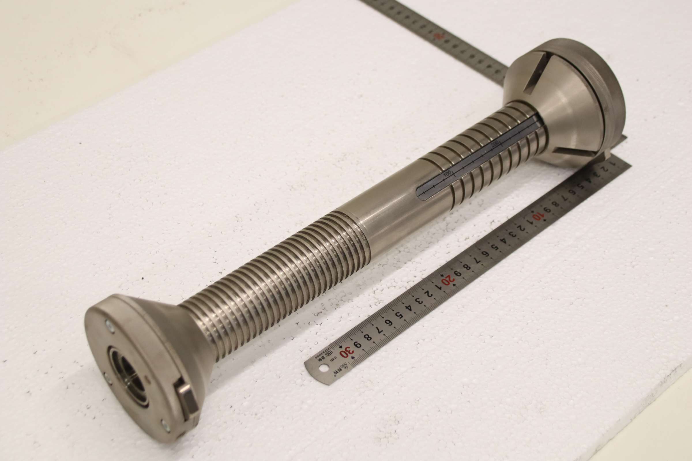 Reel, reel rod, trapezoidal thread spindle, spindle -Reel: Reel rod with quick-release fastener -Type: unfortunately without a type designation -Shaft: Ø 44 mm, dimensions see photos -Dimensions: Ø 98 x 440 mm -Weight: 3.3 kg