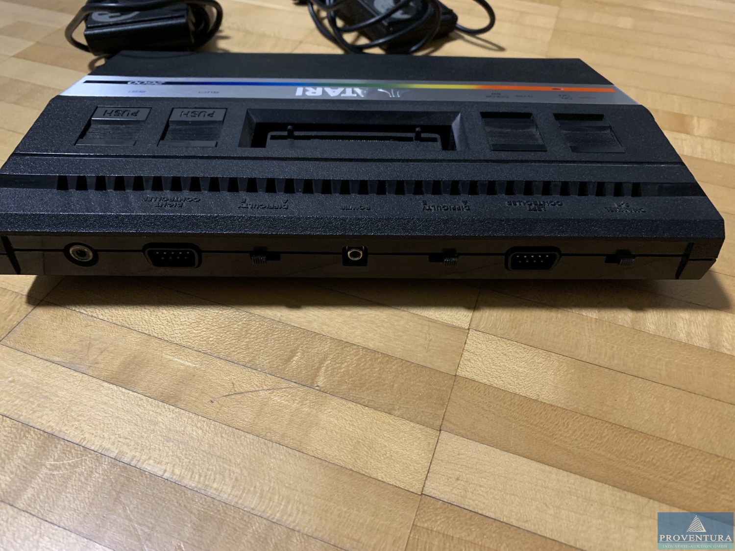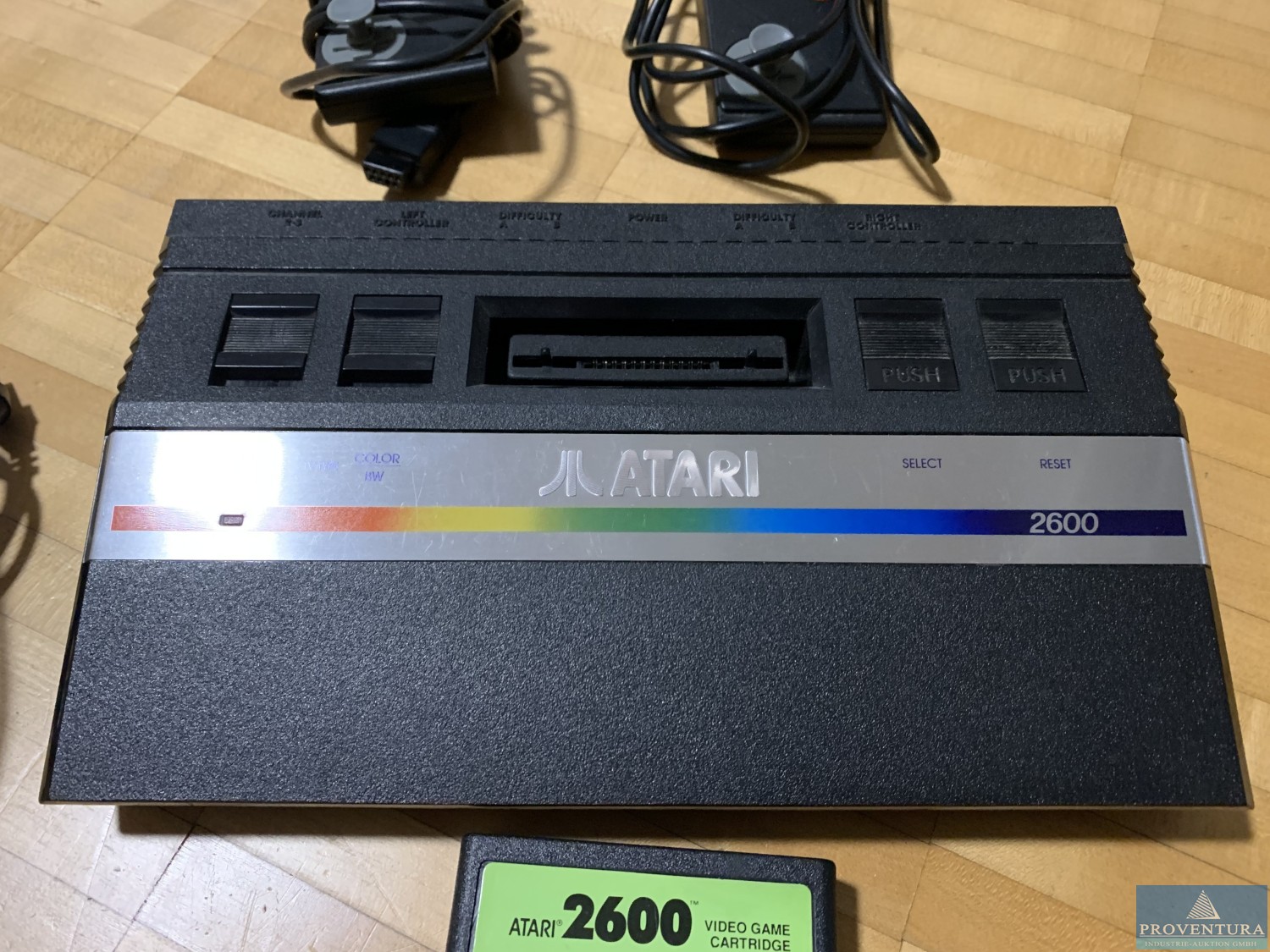 La consola de videojuegos ATARI 2600, fabricada entre 1984 y 1991, la cubierta metálica y la franja arcoíris más pequeña, también se lanzó en octubre de 1984. Interruptores de color/blanco y blanco y selectores de canales. El interruptor Color/BW se utiliza para cambiar de juego en juego dentro de un grupo. Fuente de alimentación, cable de televisión, manual de usuario original y certificado de garantía, caja original. Funcionalmente probado.