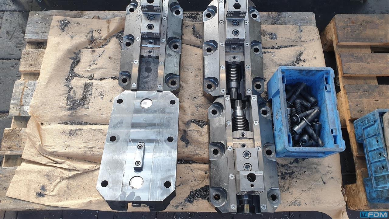 weight:400 kg8 clamping jaws each ca. 600 x 210 x 170 mm , hole dia. 22 mm, center distance ca. 170 mmwas used for clamping rings on a Vertical Turning Machine