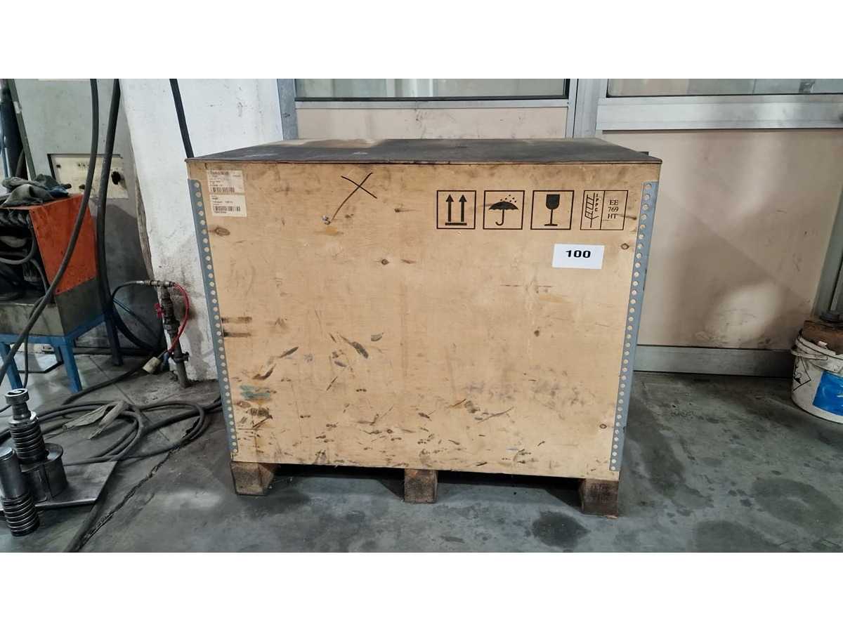 Filtro de emulsión – Unidad de filtración de cinta de papel Datos generales: Tipo de equipo: Unidad de filtrado y refrigeración de emulsión Peso: aprox. 500 kg Dimensiones (L x Anla x Ar): aprox. 2100 x 900 x 1100 mm Detalles técnicos: Sistema de filtración: Filtración por cinta de papel Avance automático de la correa: sí (controlado por sensor de flotador) Descripción: Unidad de filtración por emulsión industrial diseñada para filtrar y enfriar fluidos de corte. El sistema utiliza una banda de papel para capturar fragmentos y partículas metálicas. Cuando el filtro se satura, un sensor de flotador activa el motor para avanzar la banda, exponiendo una superficie de filtración limpia y asegurando un funcionamiento continuo. Auction-ID: A7-45351-13