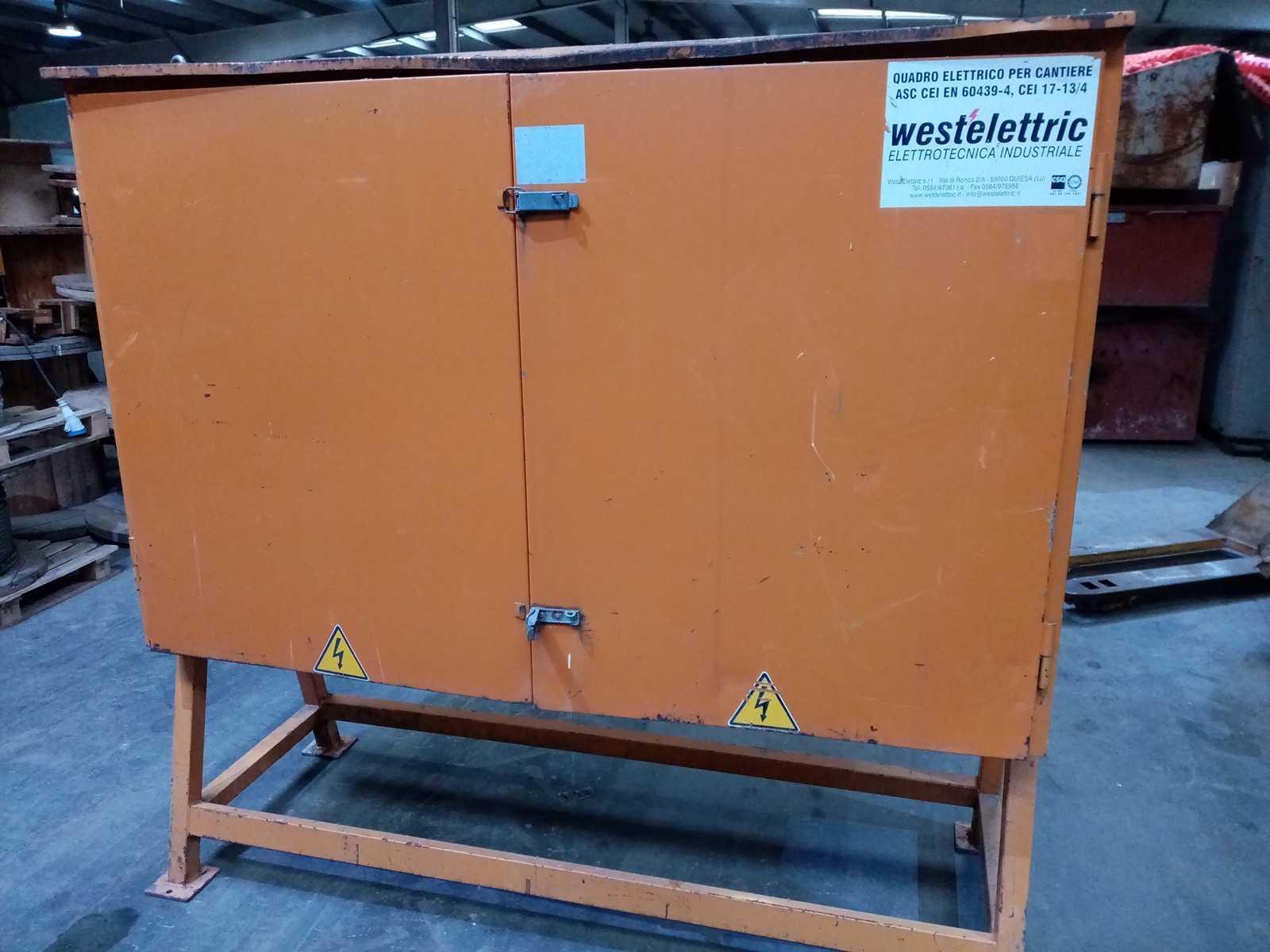 WESTELETTRIC – Cuadro eléctrico Datos generales: Fabricante: Westelettric Tipo de equipo: Panel de control eléctrico Peso: aprox. 300 kg Dimensiones (L x Anla x E): aprox. 2000 x 500 x 2000 mm Estado: No probado Descripción: Cuadro eléctrico industrial diseñado para el control y la distribución de sistemas eléctricos. Adecuado para su integración en líneas de producción o instalaciones industriales, proporcionando una gestión centralizada de componentes eléctricos. Auction-ID: A7-45351-42