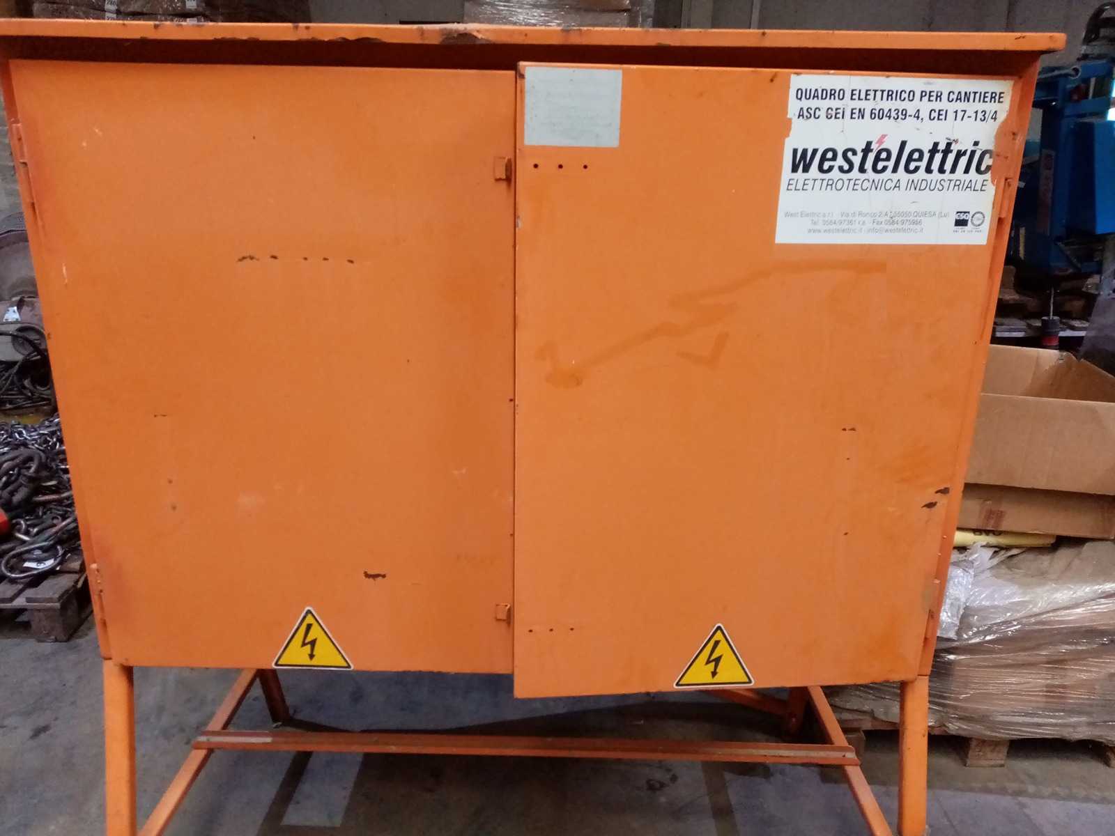 WESTELETTRIC – Cuadro eléctrico Datos generales: Fabricante: Westelettric Tipo de equipo: Panel de control eléctrico Peso: aprox. 250 kg Dimensiones (L x Anla x E): aprox. 1500 x 500 x 1800 mm Estado: No probado Descripción: Cuadro eléctrico industrial diseñado para el control y la distribución de sistemas eléctricos. Adecuado para la integración en instalaciones industriales, ofreciendo gestión centralizada de componentes eléctricos. Auction-ID: A7-45351-43