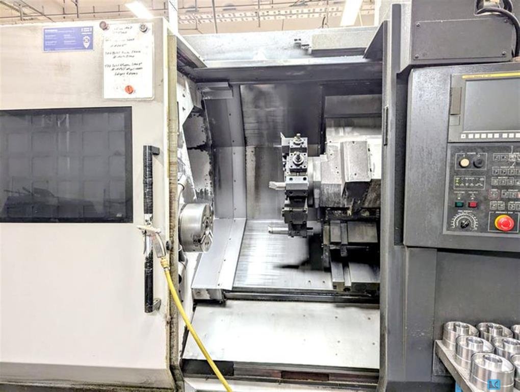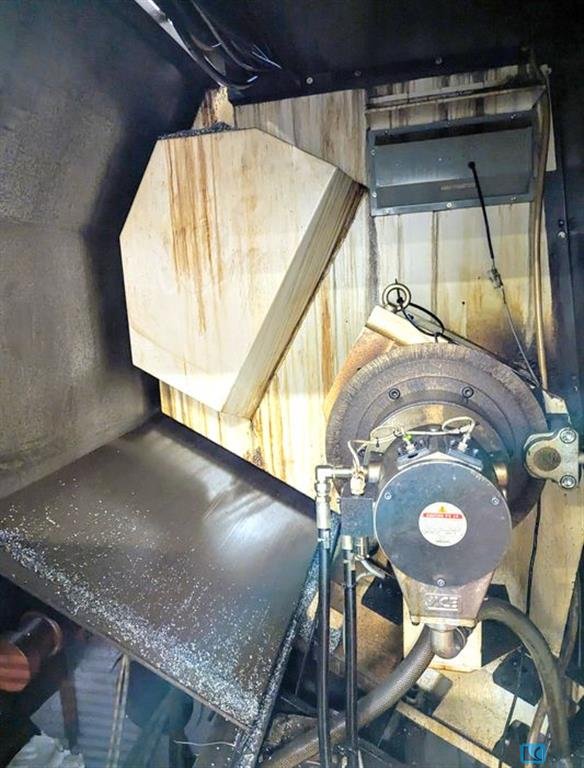 turning diameter: 400 mm turning length: 584 mm greates pass round over bed: 750 mm control: Siemens 828 D Shop Turn spindle passage: 81 mm spindle speed:: 3500 U/min spindle motor: 18,5/22 kW max. torque on the spindle: 410 Nm no. of tools in turret 1: 12 BMT 65 driven stations: 12 BMT 65 speed of driven tools: 5000 U/min drive milling spindle: MK 5 kW y-axis: +/- 60 mm rapid traverse: 30/30/10 m/min tail stock: MK 5 range L-W-H: 4,6 x 1,9 x 2,1 mm weight of the machine ca.: 6,65 t CNC lathe with driven tools, Y- axis and sub spindle - 3 jaw chuck Kitagawa Ø 250 mm - Chip conveyor - partscatcher with box into door - signal lamp - 2 +2 driven toolholder - some fixed toolholder - boxway system - tool measuring - programmable tailstock - coolant 23 bar - bigger coolant tank 225 ltr. - double cartridge filter - coolant gun - two steps coolant pressure The data for this ad was created wit ...