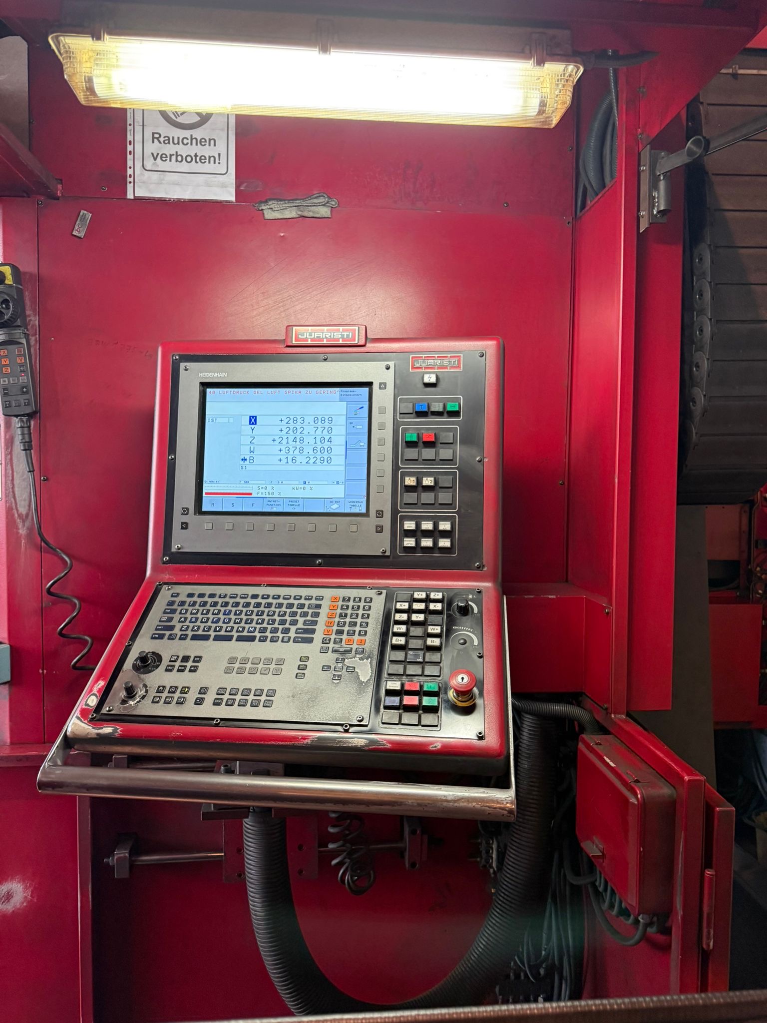 spindle diameter: 150 mm x-travel: 4000 mm y-travel: 3000 mm z-travel: 1000 mm w-travel: 1500 mm Table area: 2000x2000 mm Table load: 30 t Feed: 3-3500 mm/min Rapid movement: 5000 mm/min transmission ratio: 2 spindle power: 37 kW total power requirement: Heidenhain kW voltage: 380 V frequency: 50 Hz Control: type: ITNC mm weight of the machine ca.: t dimensions of the machine ca.: m The tech. Data are manufacturer or operator information and therefore non-binding. We reserve the right to prior sale, Our terms and conditions of sale apply exclusively. About us More than 400 of our own machines in stock Over 15,000 m² of storage space, 70 t crane capacity More than 10,000 items and accessories for your workshop If you are interested in selling machines, production lines, or your business, please contact us. You can find further offers on our website. Tours are possible by appointment. ...