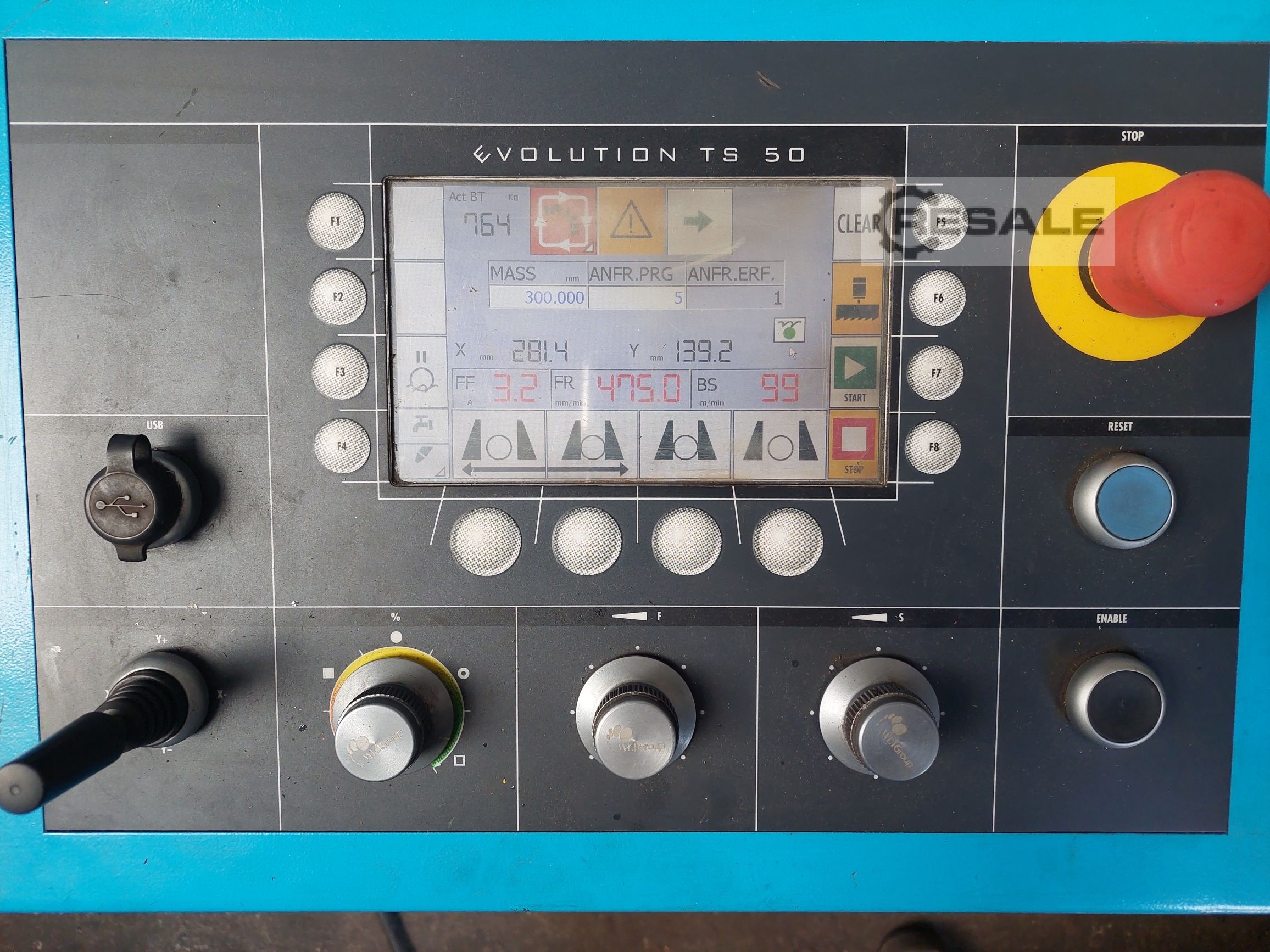 Máquina de sierra de cinta de 2 columnas BERG & SCHMID SBS 300 VA-1/CNC Año de fabricación: 2019 Diámetro de corte de la ronda: 300 mm Diámetro cuadrado de corte: 300 mm Diámetro de corte plano: 300 mm x 260 mm Velocidad de la correa: 20 – 100 m/min Sistema de control SNC 20 moderno Accionamiento de sierra controlado por frecuencia Botones de control con pictogramas Cepillo de astillas motorizado Hidráulica de tensión de correa Regulación de la presión de sujeción Luz de trabajo Transportador de astillas Calle de rodaje 2 m
