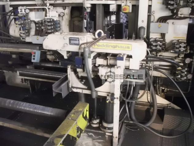 Taladradora Peddinghaus TDK 1000/9 Sierra Peddinghaus LC 1250 Peddinghaus Signo 05 Markierer Sistema de control Siemens Sinumerik Año de construcción: 1990 Anchura máxima de la pieza de trabajo (90 grados): 1000 mm La unidad de corte se puede girar 45 grados hacia la derecha y hacia la izquierda. Anchura máxima de la pieza (45 grados): 700 mm Altura máxima de la pieza de trabajo: 420 mm (taladro) - 440 mm (picador) Diámetro máximo del agujero: 40 mm Número de brocas: 9 (3-3-3) Diámetro máximo de la hoja de sierra: 1250 mm Ancho de la hoja de sierra: 9 mm Peso total del equipo: ~17.5 t Tamaño de recogida del equipo: - Taladro: 5000 x 2100 x 3000 mm - Sierra: 3500 x 1300 x 2500 mm - Marcado: 1400 x 1200 x 1200 mm - Controlador: 1200 x 1000 mm - Unidad de potencia hidráulica: 1000 x 500 mm