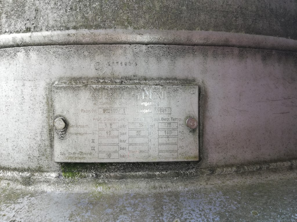 General SKUR0906 MakeWalter Stöcklin AG (CH) Type6300 ltr. LocationBarneveld Pressure Working pressure3.2 Bar Vacuum possiblecheck Working pressure jacket16 Bar Main Features MaterialStainless steel Volume6300 Ltr. Motor11.2 KW Specified Features - Stainless Steel Reactor Reactorcheck Capacity8500 ltr ( nett 6300 ltr. ) Vessel sizesdia. 2000x3050mm Dished bottomcheck Dished top sidecheck Manholedia. 600mm Top connectionsDN150 (5x), DN250 (2x) Outletdia. 125mm Half coil jacketed(280 Ltr) Max. temperature-30/200 degr.C. With paddle stirrerEkato EM100-D Motor3,07/11,2 kW, 380 Volt, (EX) Speed mixing shaft6.9-69 rpm Stainless Steel Reactors MaterialStainless steel 1.4435 (316L) Information No.1330 Year of construction1985 Floorspace2,4x2,4 M Total height4,9 M Weight4500 Kg ATEX compatiblecheckPlastic & polymersCatalysts & fillersStainless Steel ReactorsSo ...