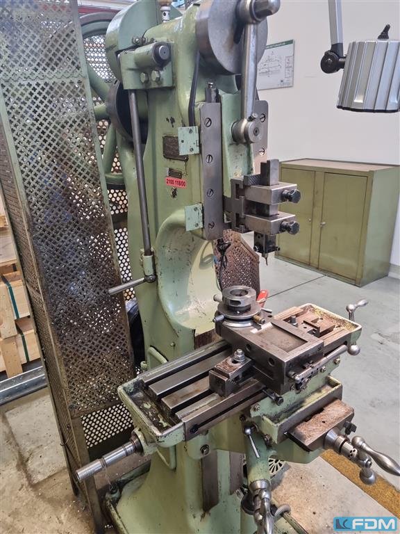 bore capacity in steel (diameter):10 mm throat:210 mm bore stroke:100 mm total power requirement:0,7 kW weight of the machine ca.:302 kg dimensions of the machine ca.: 620 x 800 x 1950 mm Table dimensions:350 x 250 mm spindle speeds::250, 355, 710, 1000, 1400, 2000, 2500 U/min